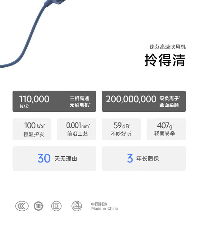 LAIFEN high-speed hair dryer, quick-drying household hair dryer, LAIFEN negative ion hair dryer, birthday gift, Mid-Autumn Festival gift, gift for parents, friends, elders, LAIFEN LF03 flash silver