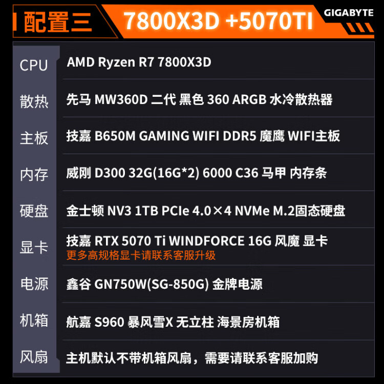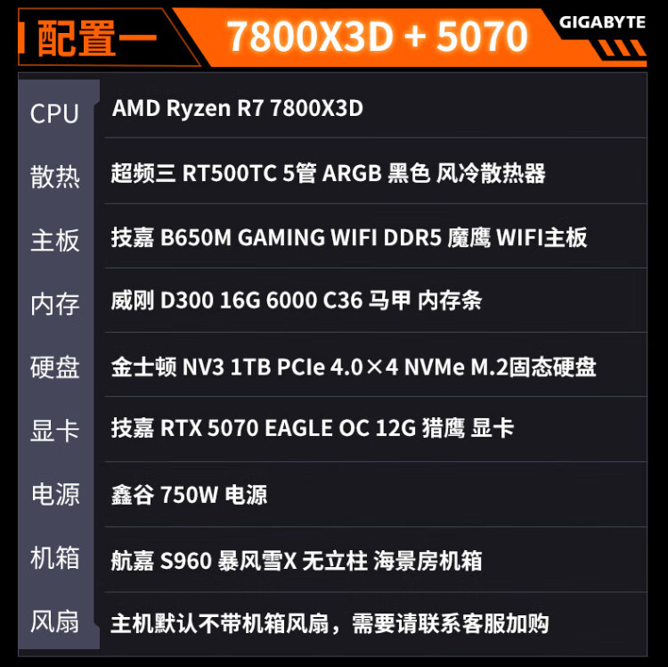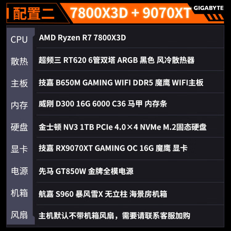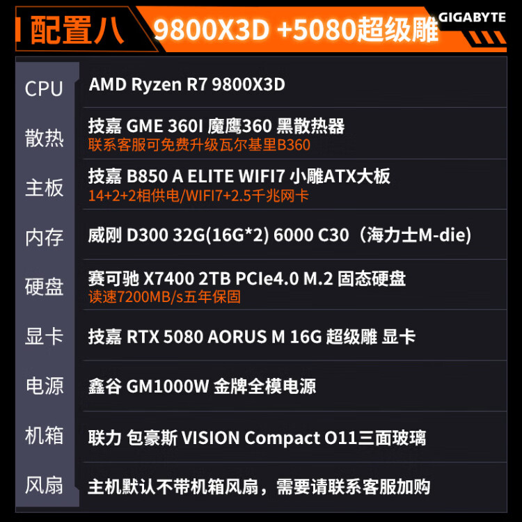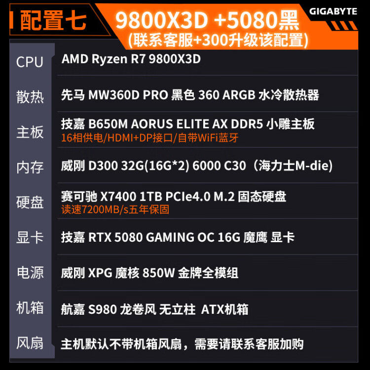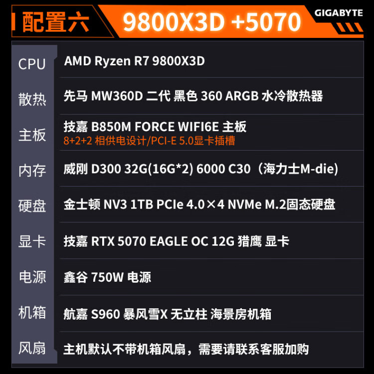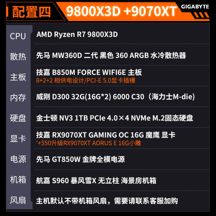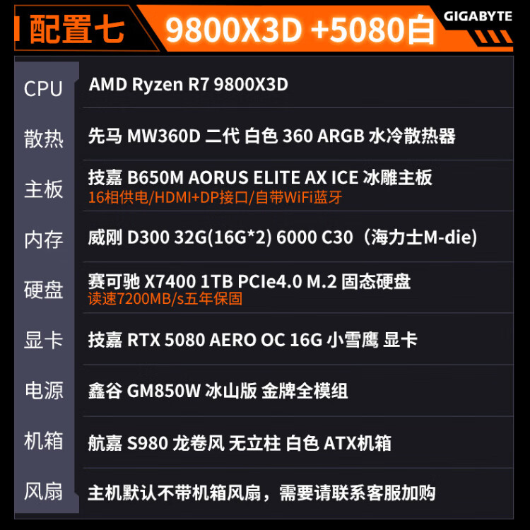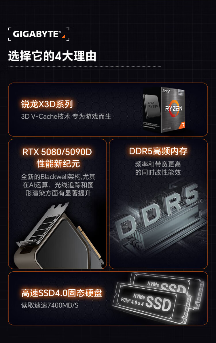 Gigabyte 24-issue interest-free AMD Ryzen R7 7800/9800X3D+5070TI/5080/5090D/9070XT e-sports game console desktop complete machine thousand frames e-sports configuration five 9800X3D+5070TI
