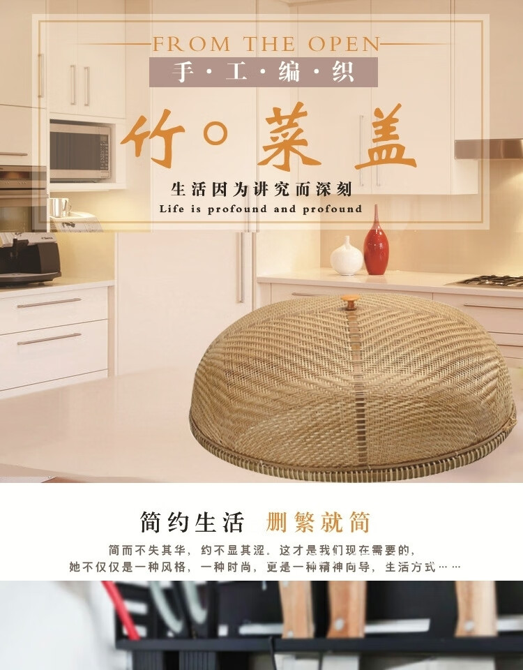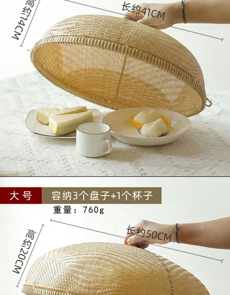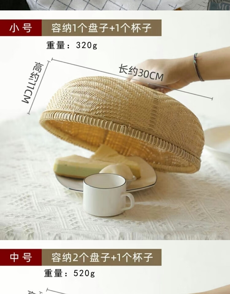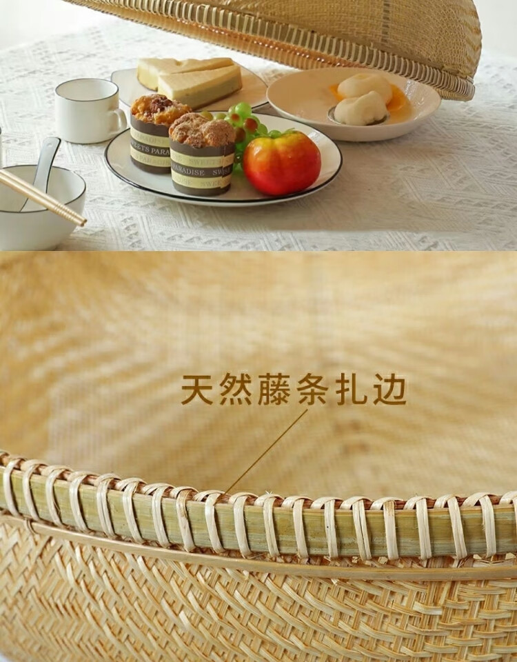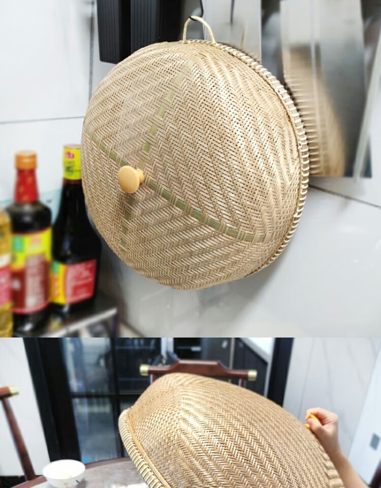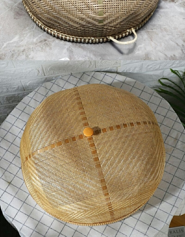 Jiaxun Pigeon Rice Cover Bamboo Dining Table Cover Large Vegetable Cover Anti-fly Cover Chinese Fruit Cover Fine Hole Rice Finely Woven Bamboo Vegetable Cover Medium Size 40*14.CM