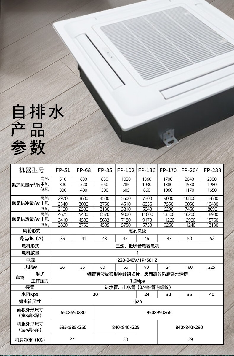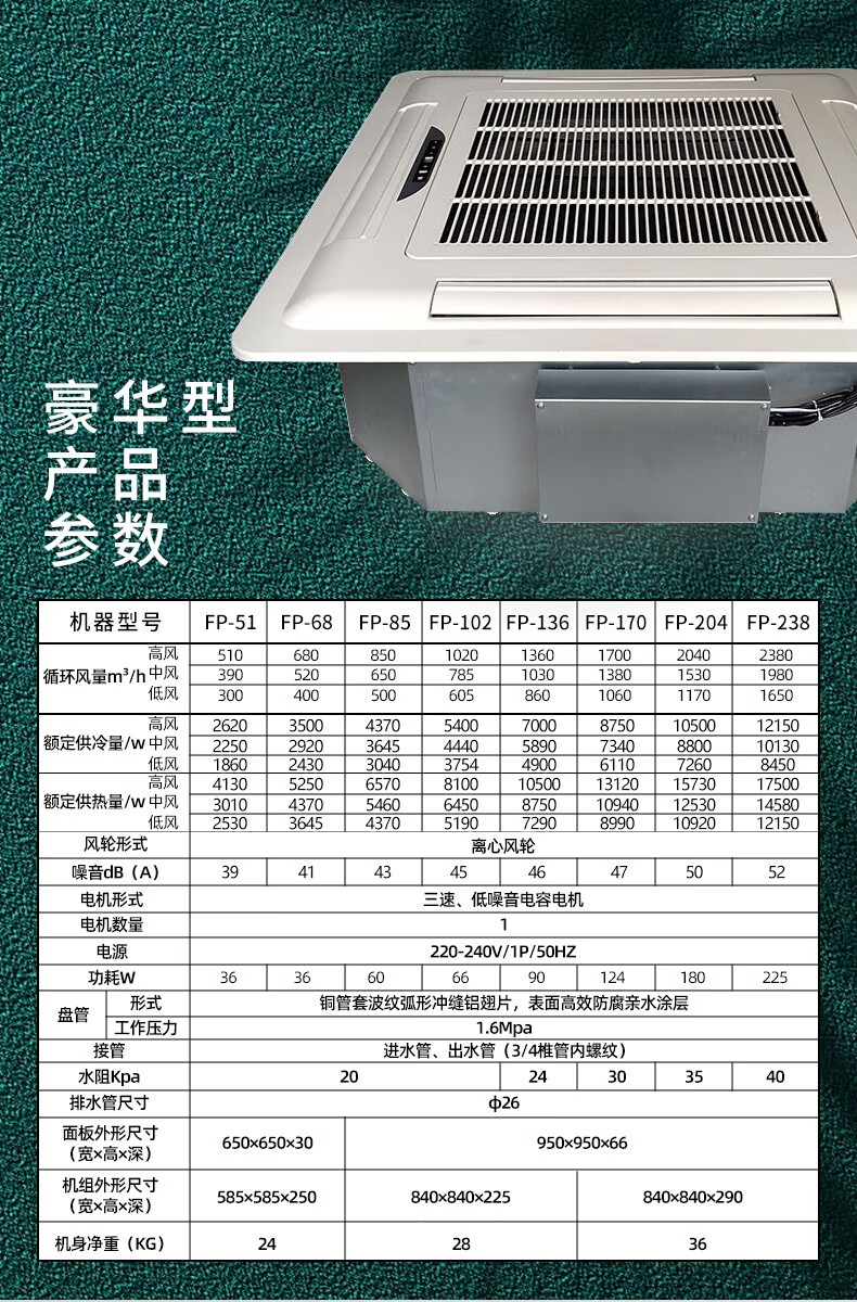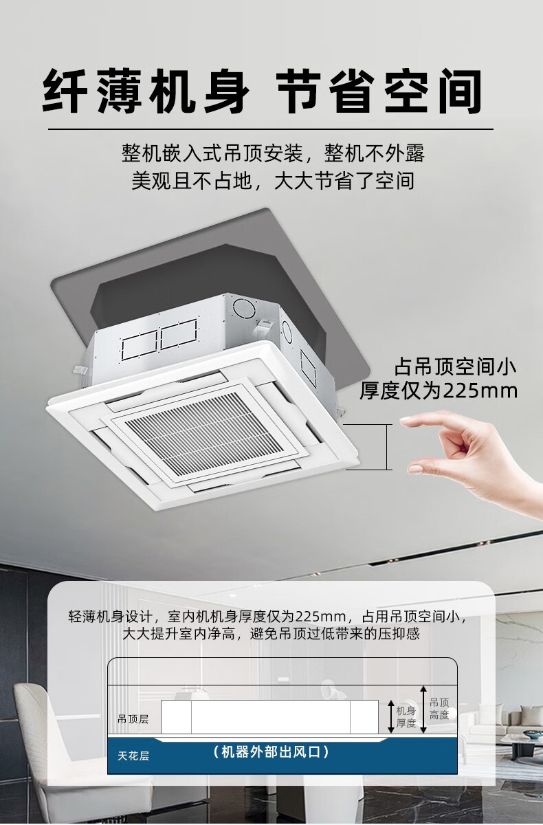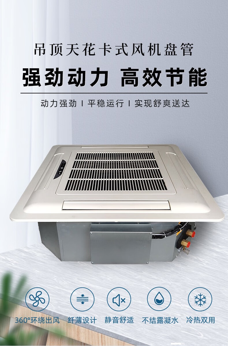 Berber card fan coil unit with air outlet from all sides, ceiling suspended ceiling embedded heating and cooling engineering air conditioner for commercial use Detailed parameters luxury type