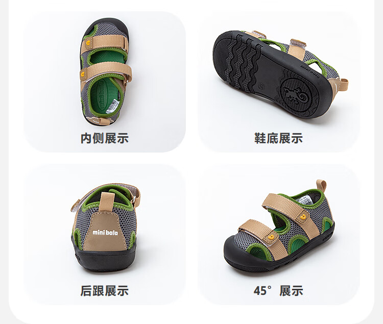 Mini Bala sports sandals for boys and girls, summer shoes for children, quick-drying mesh, new summer style, gray green tone 00324 21