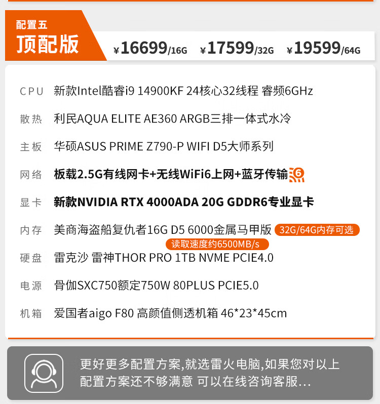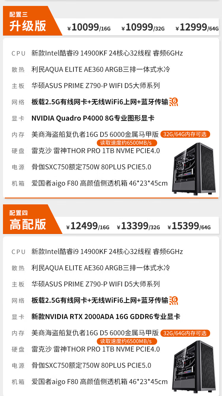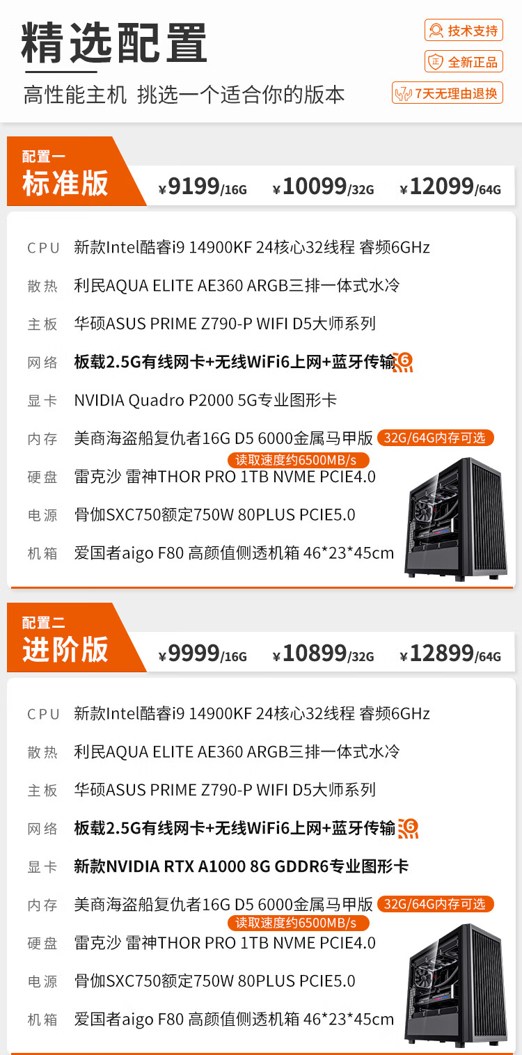 Leihuozhige professional graphics workstation host designer computer i9 14900KF creative design RTX4000ADA/P2000 modeling rendering video editing assembly machine 64G configuration one i9 14900KF+P2000