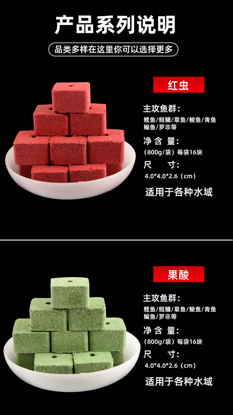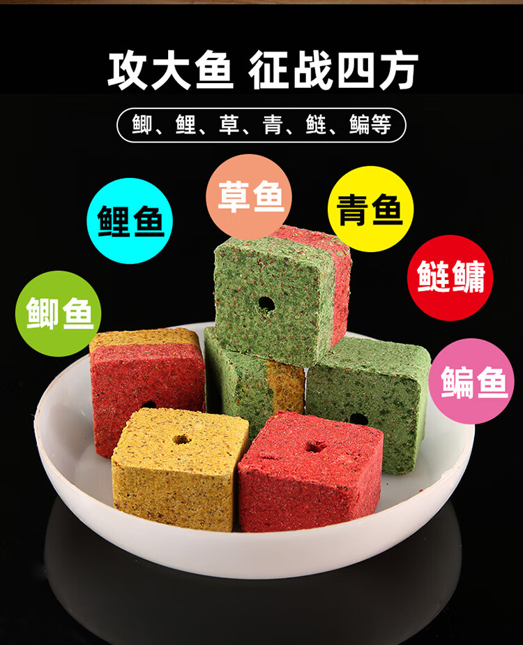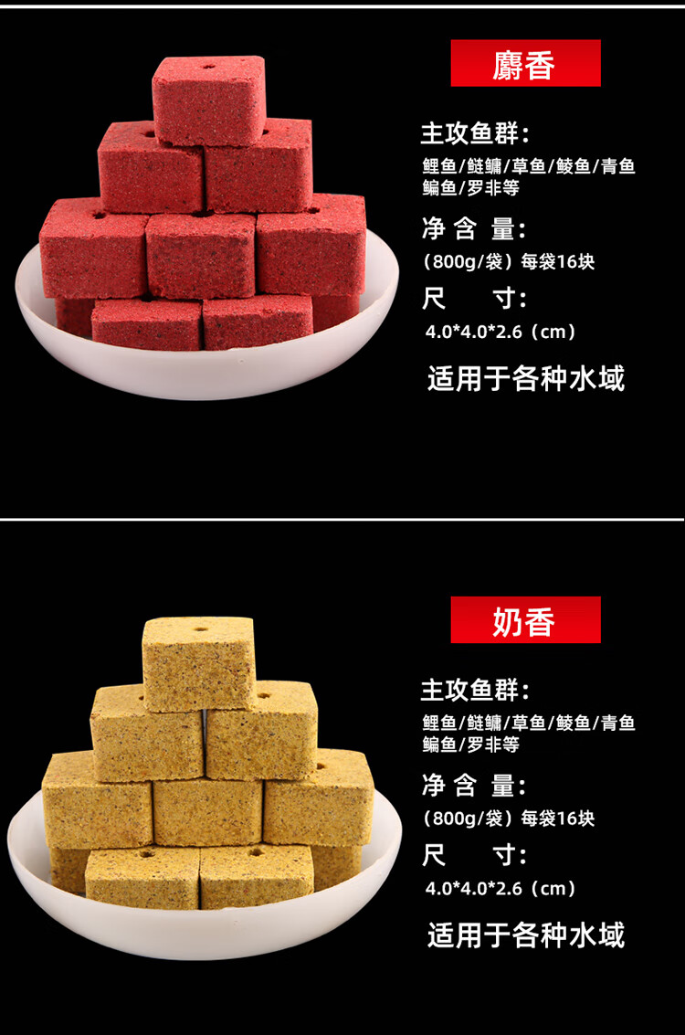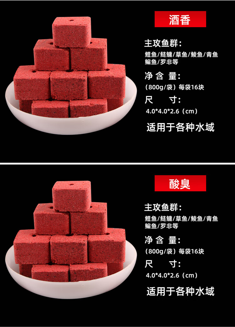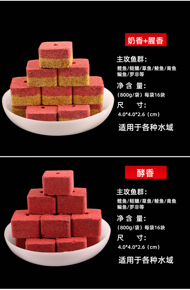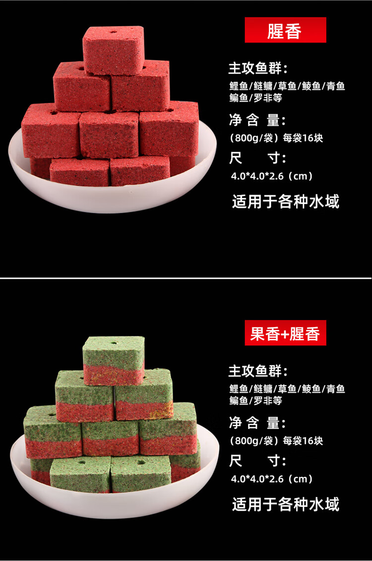 Square bait for silver carp and bighead carp wild fishing for big-head carp and crucian carp, special for nesting, sea pole and throwing pole, sour and smelly giant flip hook fish bait, square bait with fruity/fishy aroma, 800g/16 pieces, master, please match the flavor by yourself