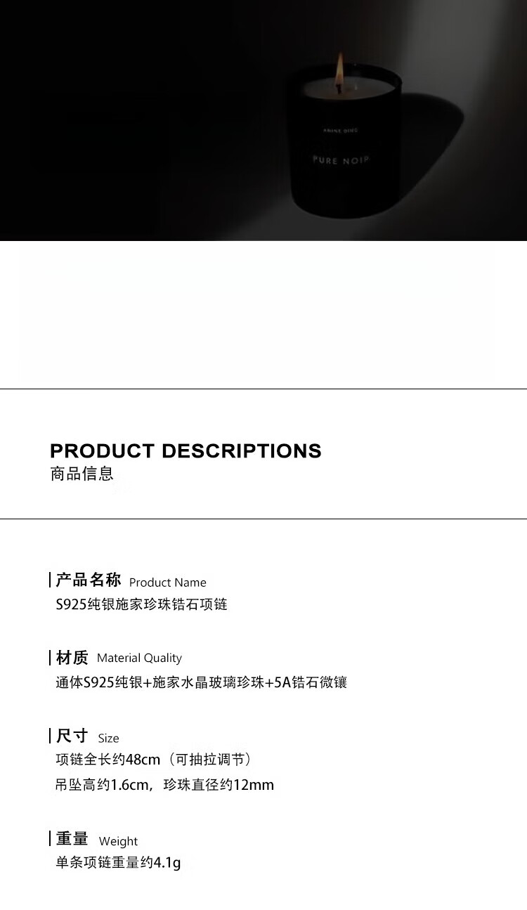 Fat Donglai's same style pearl pendant S925 silver single necklace for women 2025 new light luxury niche high-end lock Pearl white necklace/piece (about 48cm) whole body silver