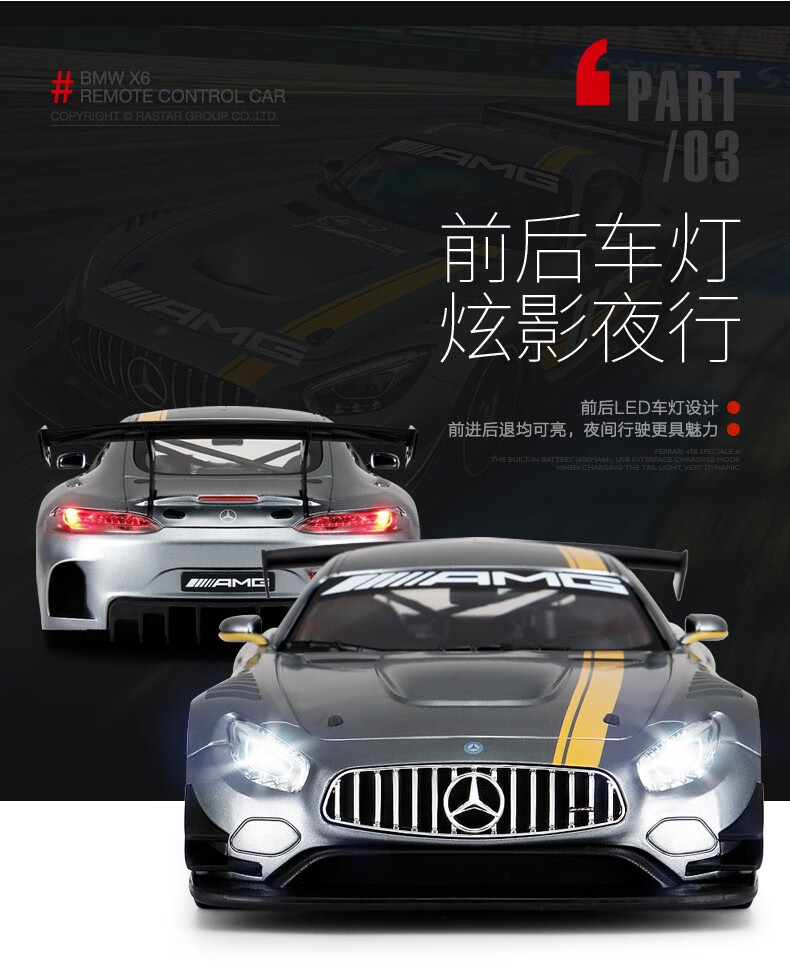 RASTAR Xinghui Remote Control Car Mercedes-Benz AMG GT Electric Drift Racing Children's Remote Control Car Toy Sports Car Model Boy Red BMW X6 M (BMW Genuine Authorization) Car + Remote Control