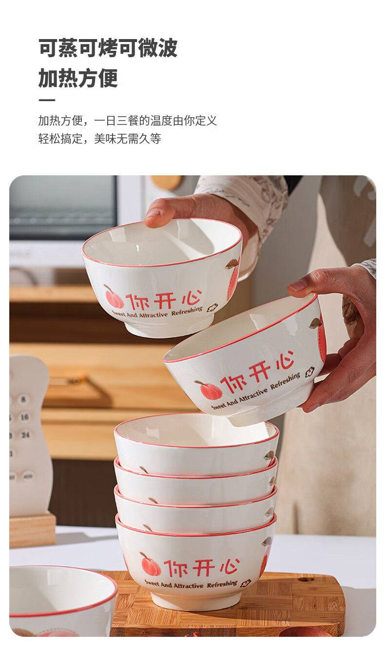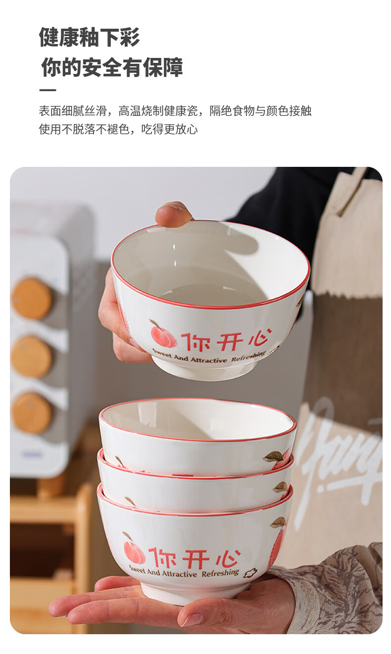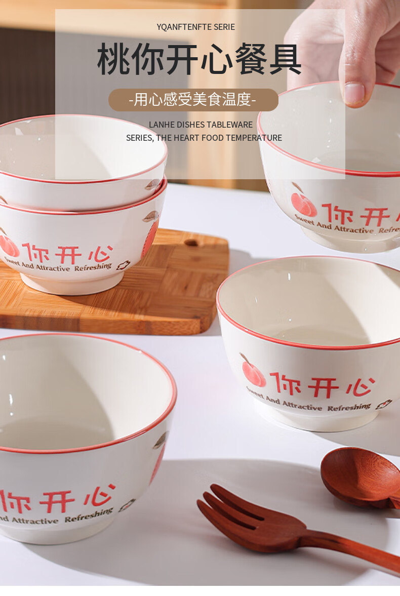 Household eating bowl ceramic new peach you are happy large rice bowl girls porcelain bowl tableware peach you are happy 1 pack 4.5 inches