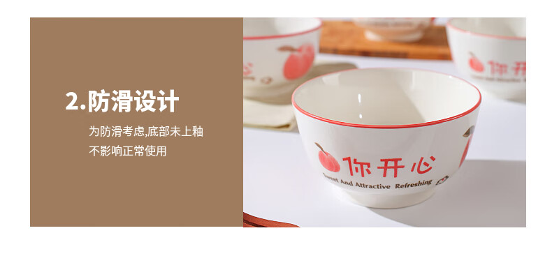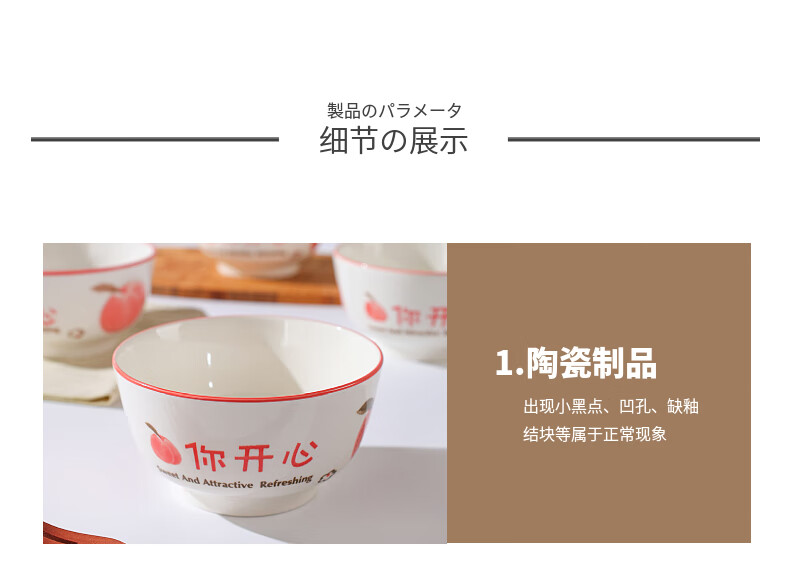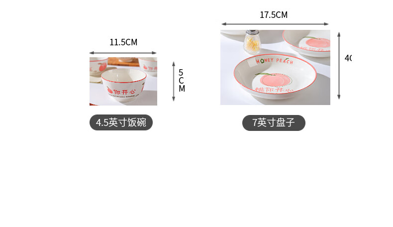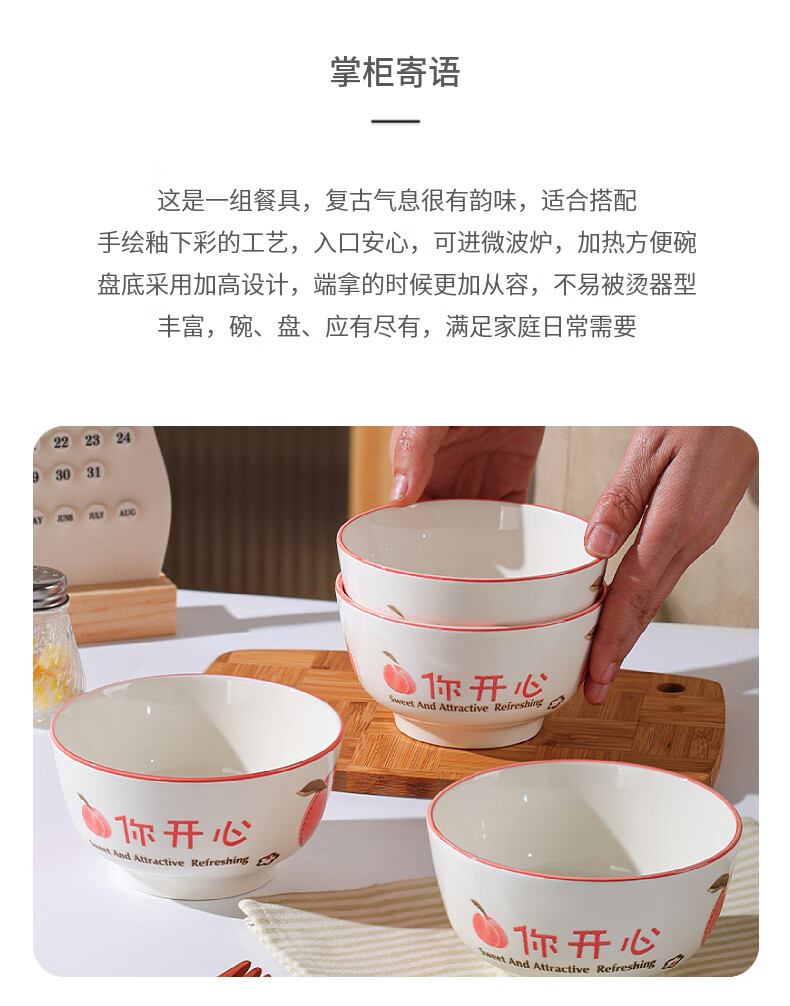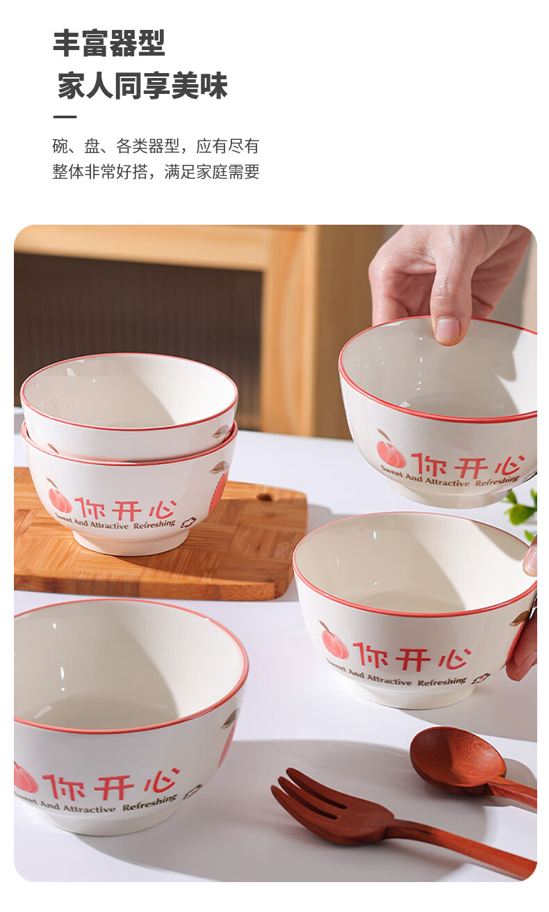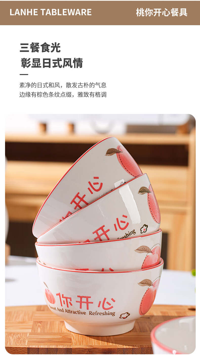 Household eating bowl ceramic new peach you are happy large rice bowl girls porcelain bowl tableware peach you are happy 1 pack 4.5 inches