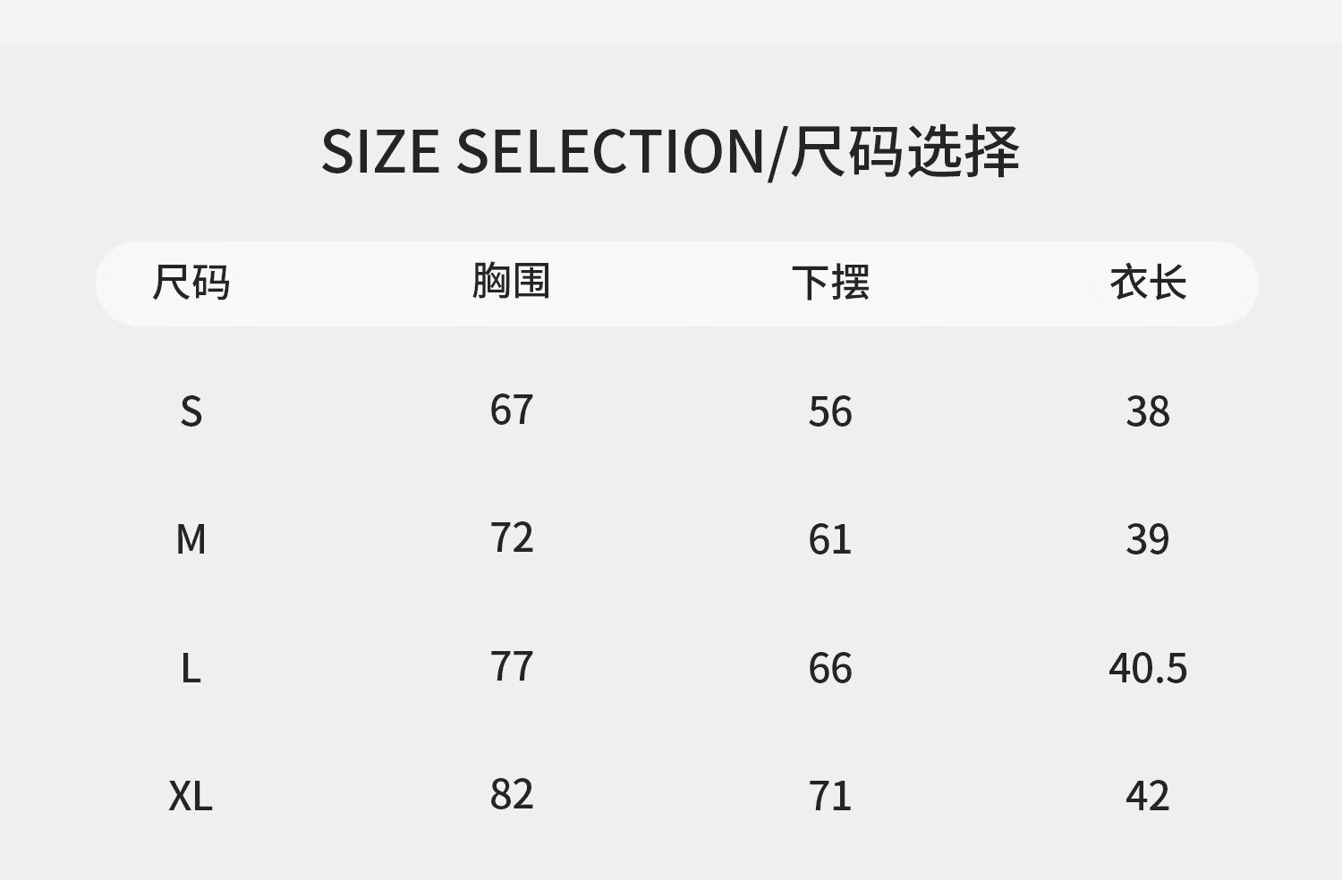 Size (cm) 42 44 46 48 50