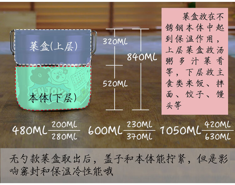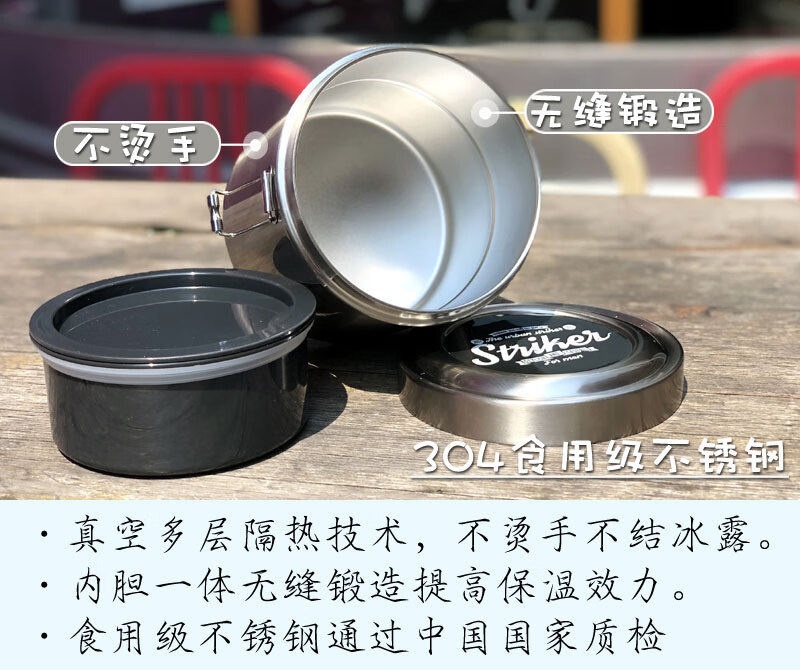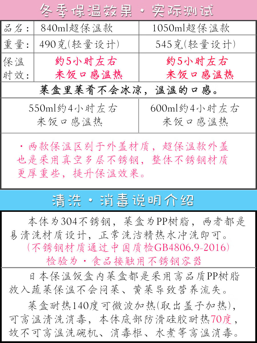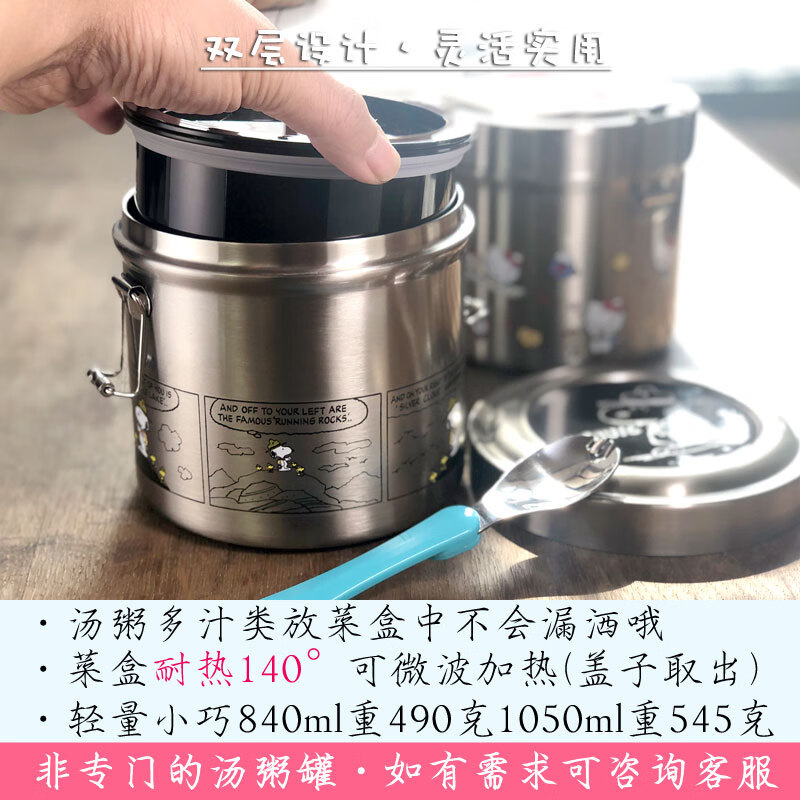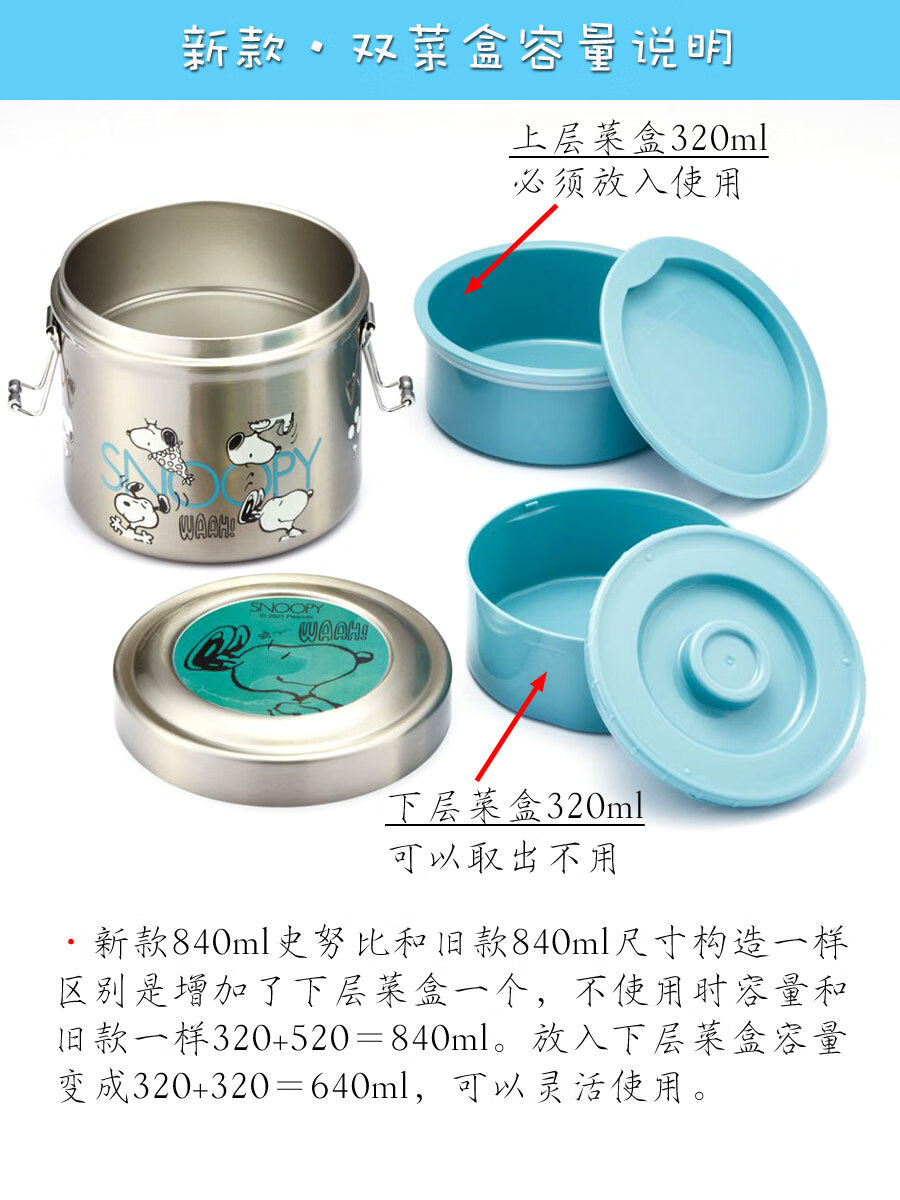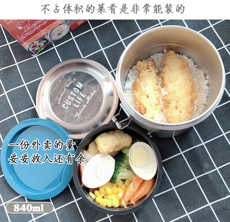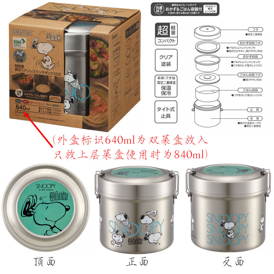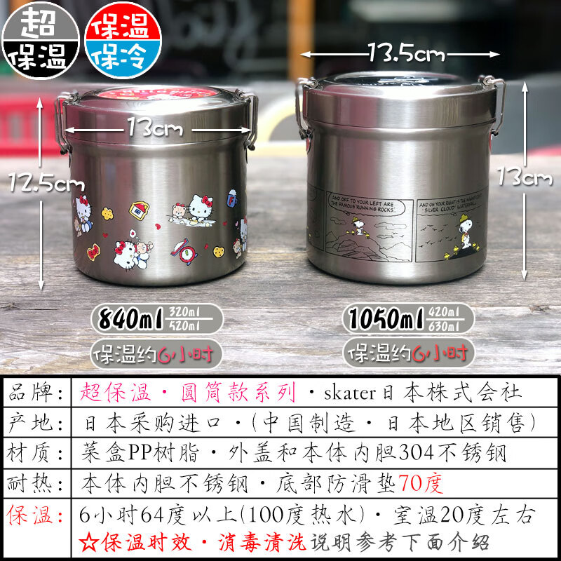 SKATER Overseas Official Japanese Student Vacuum Insulated Lunch Box Bucket Double-layer Portable Large Capacity Children's Lunch Box Double Vegetable Box-Super Insulation Model-Solid Color 1 Round 1050ml
