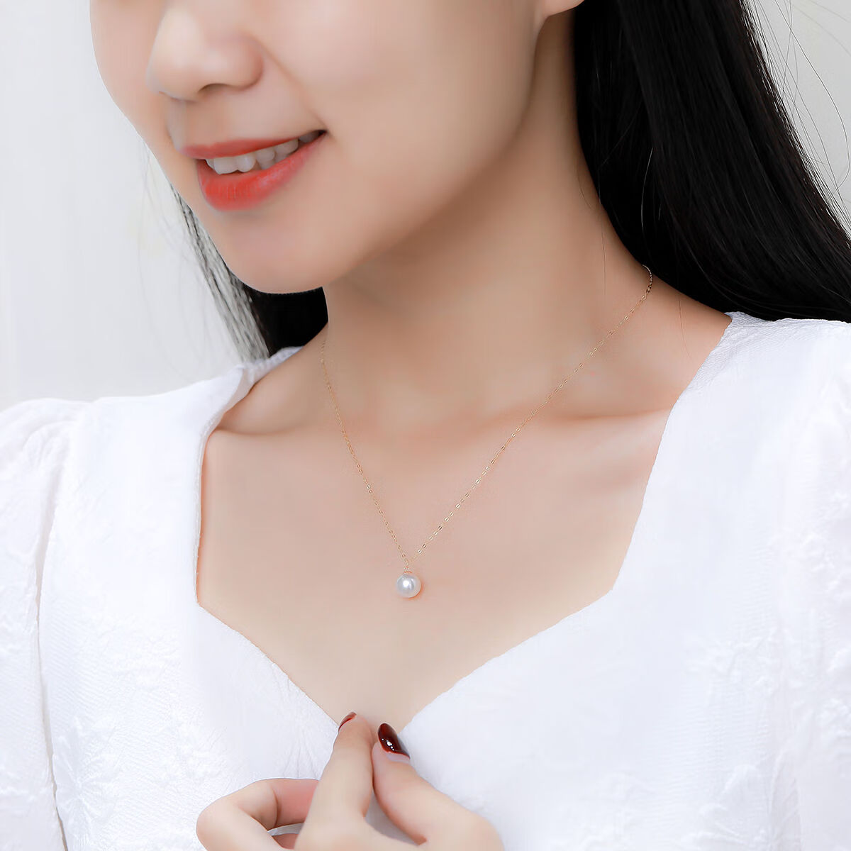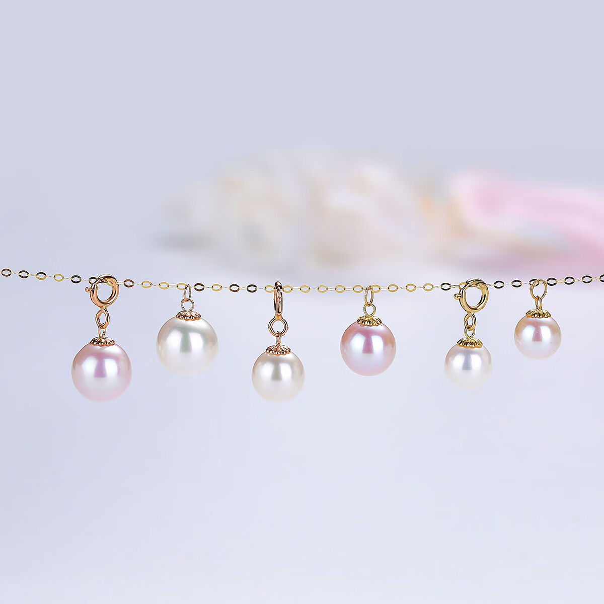 Sen Yong Lujiu Jewelry 18K Natural Freshwater Akoya True Round Highlight Living Mouth Pendant Lift DIY Single Pearl Accessories Spring Buckle Gold 5.5-6mm