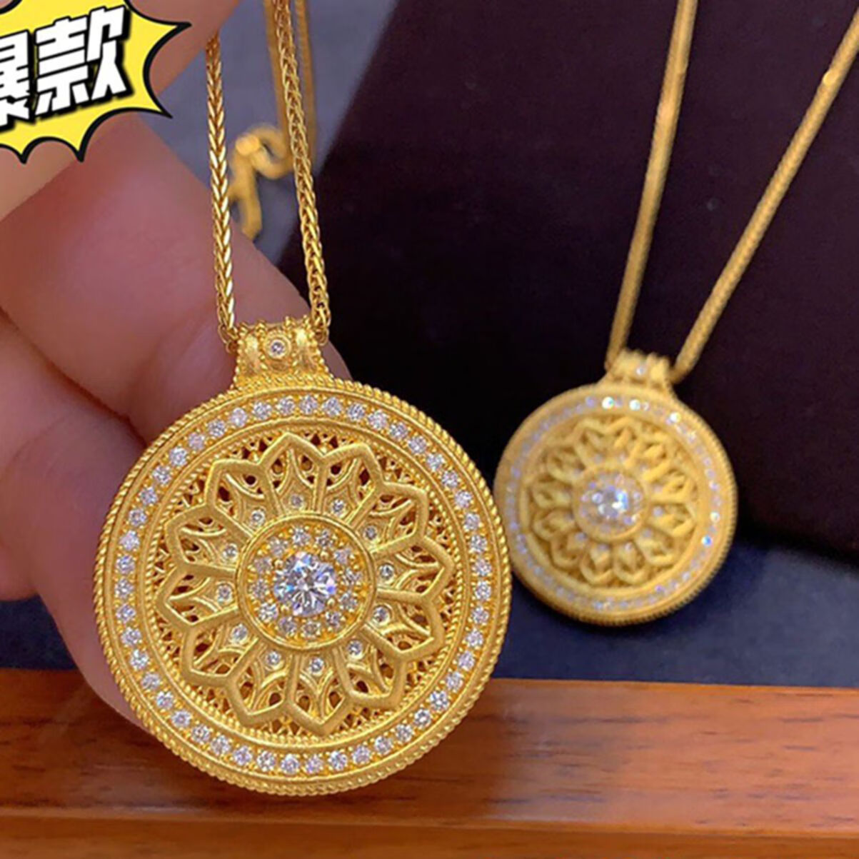 Senyong Tiaotai rose window necklace women's national trend carved light luxury sterling silver gold clavicle chain 18K gold pendant compass Tiaotai rose window necklace