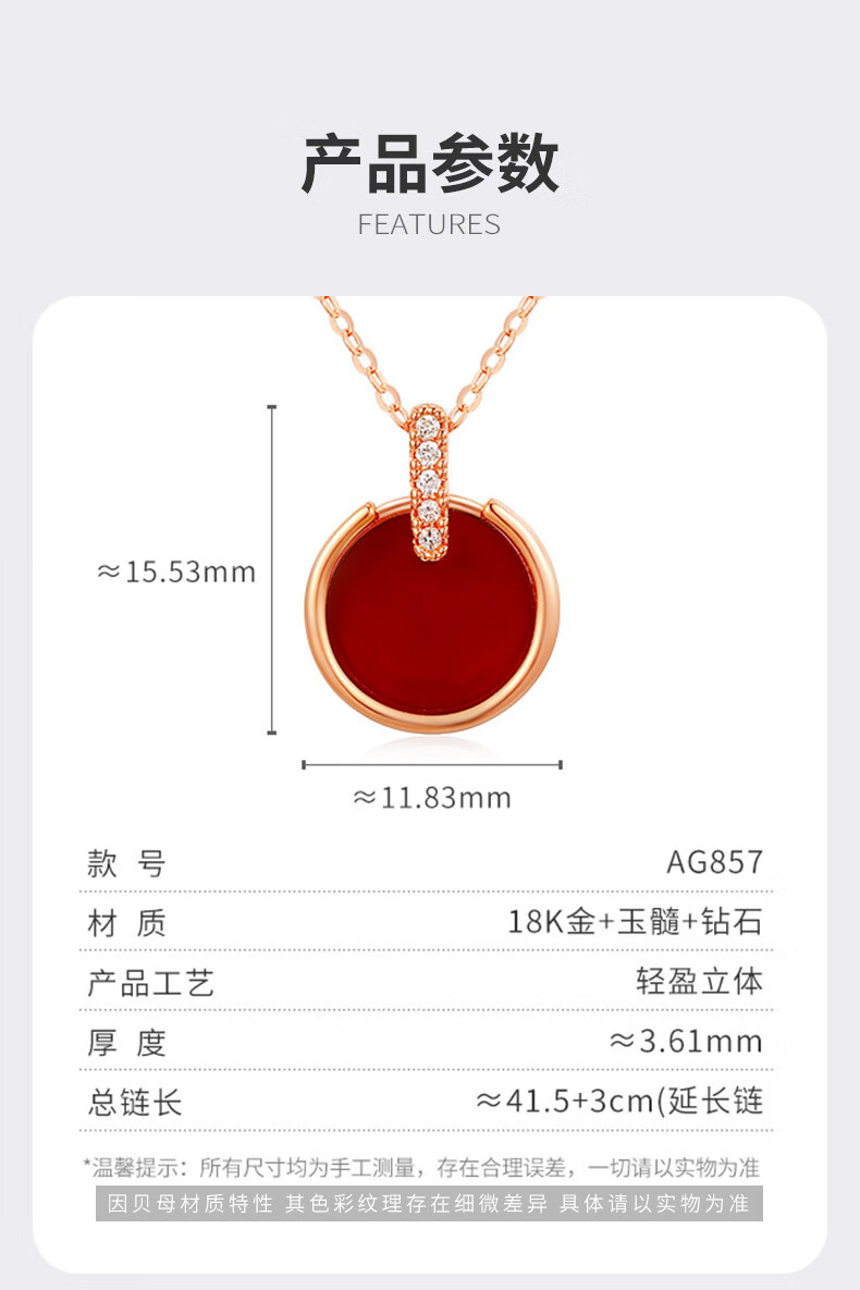 Senyong Yueji Series 18K Gold Necklace White Fritillary Carnelian AG857-858 AG858-Xiaofang Brand AG858-Xiaofang Brand