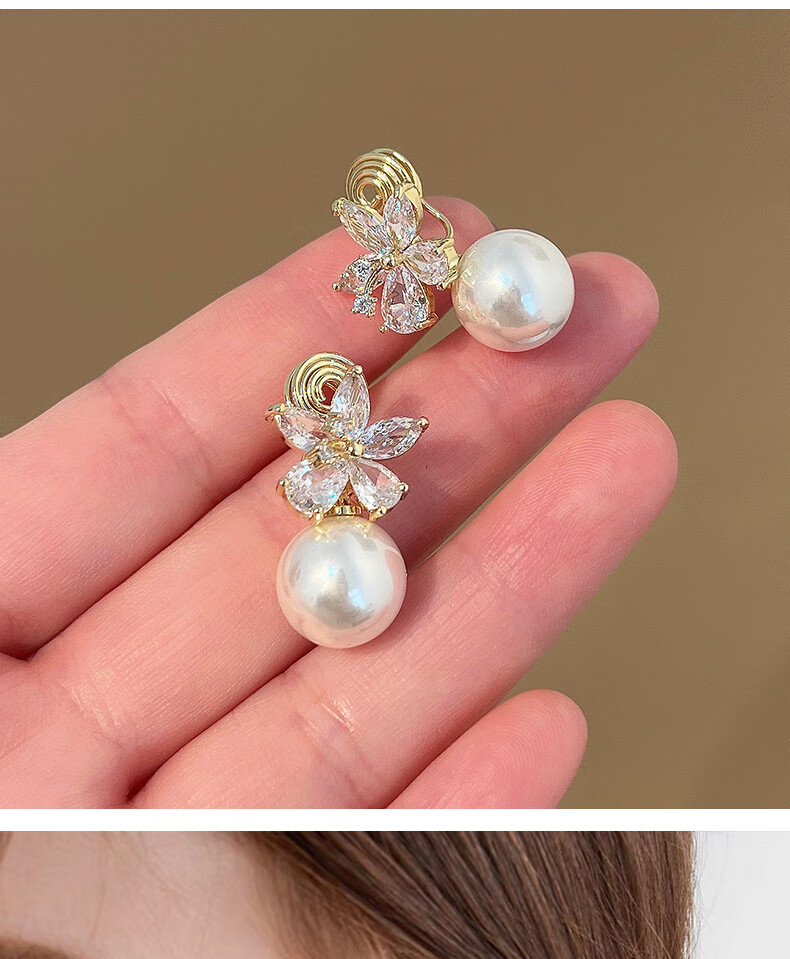 Core luxury gentle French sweet ear clip women's non-pierced earrings earrings women's flower imitation pearl mosquito coil earrings gift earrings