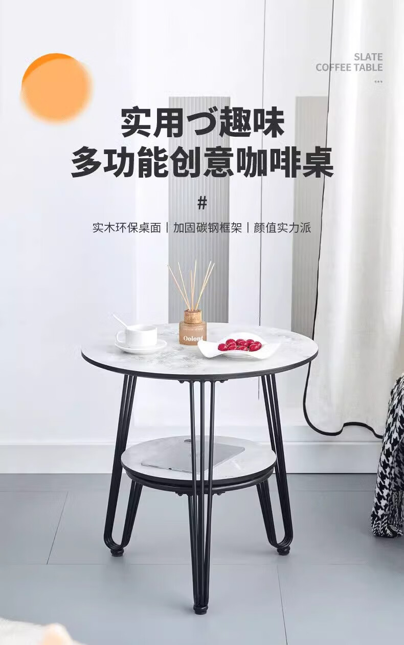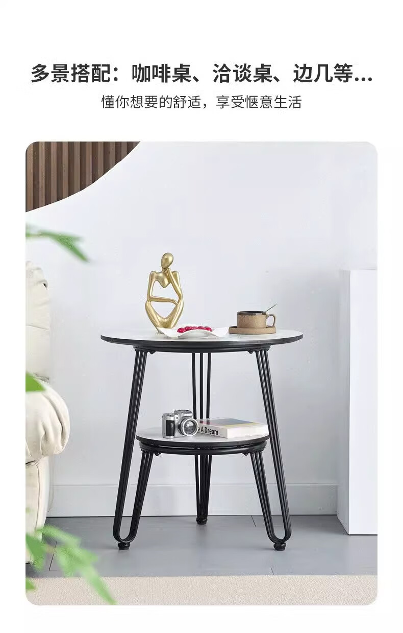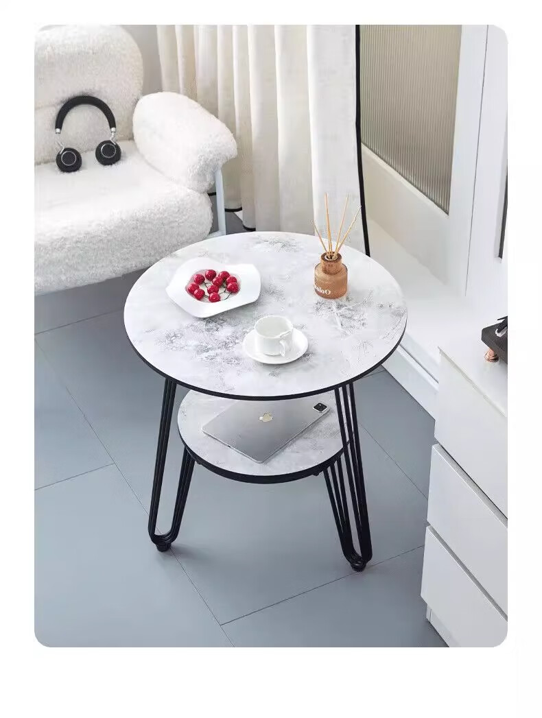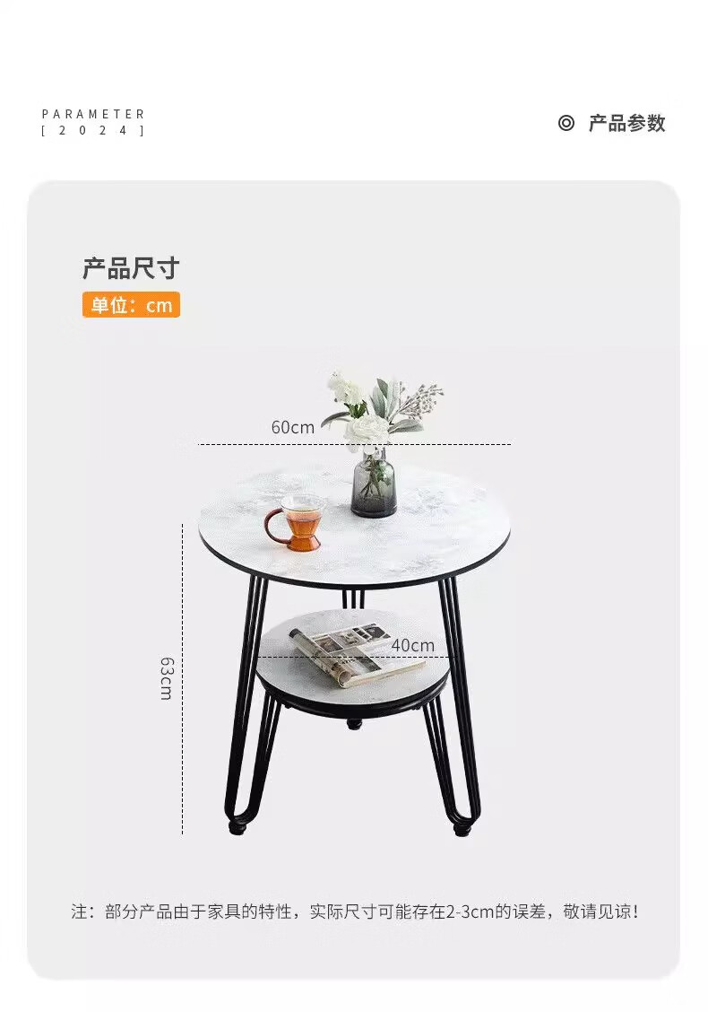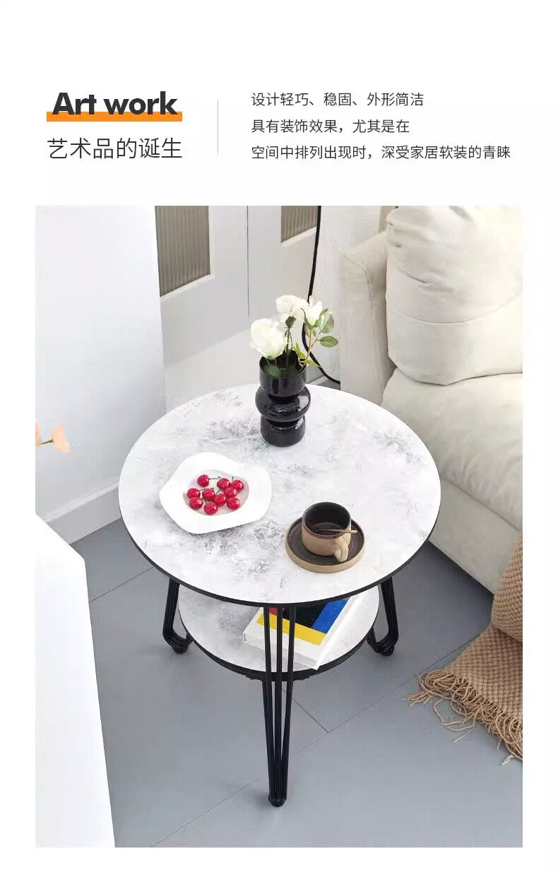 Mingqiang light luxury round table sofa table coffee table simple modern living room corner several balcony bedroom bedside Internet celebrity side table Puda gray 70 yuan 63 high thickened rock plate