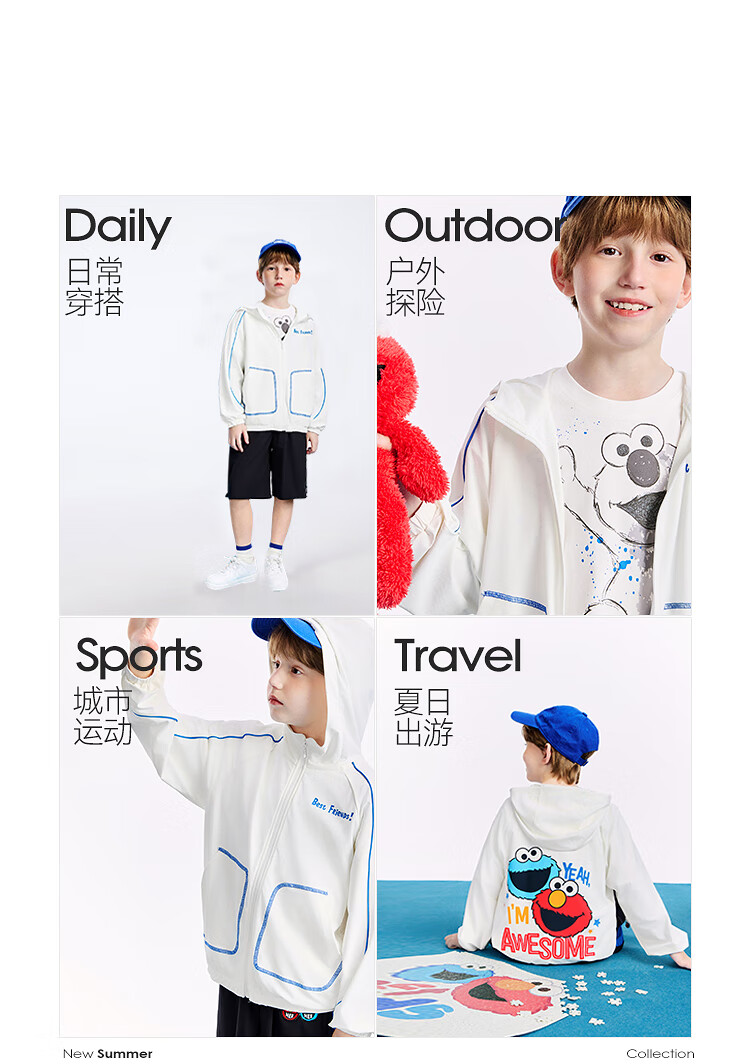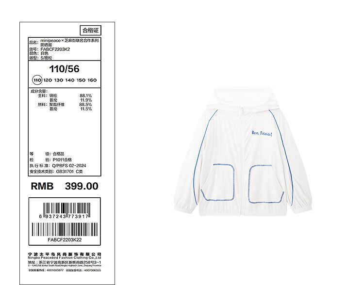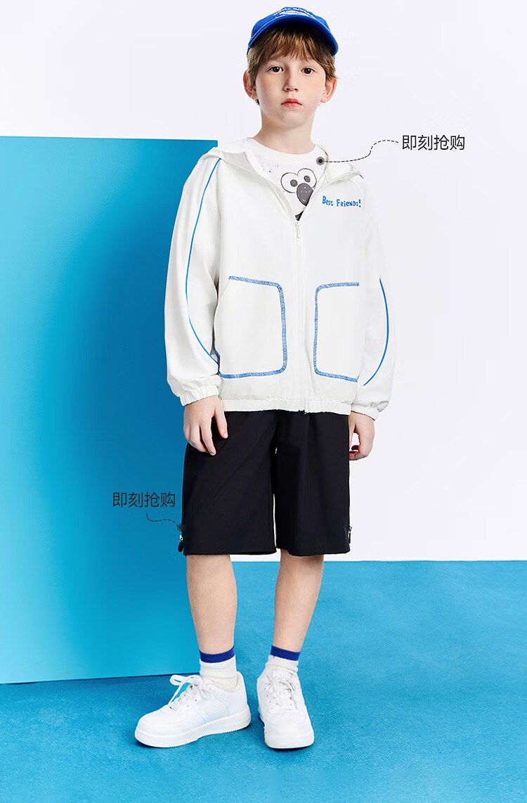 MiniPeace Children's Clothes Xia Xin Boys' Sun Protection Clothing FABCF2203 White 110