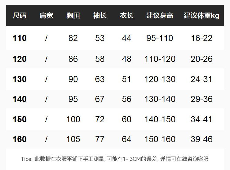 China (cm) 160-165/84-86 165-170 / 88-90 167-172 / 92-96 168-173 / 98-102 170-176 / 106-110