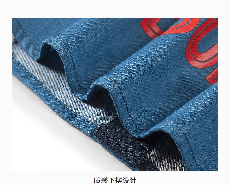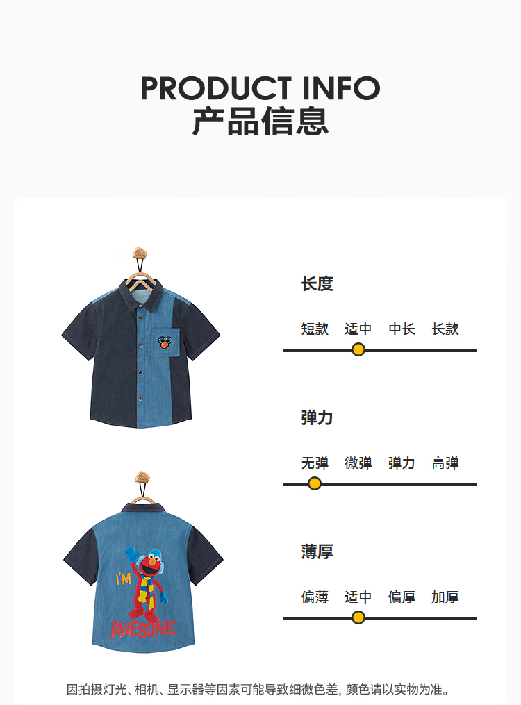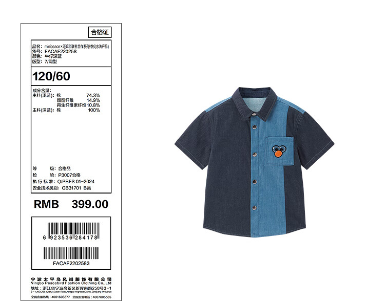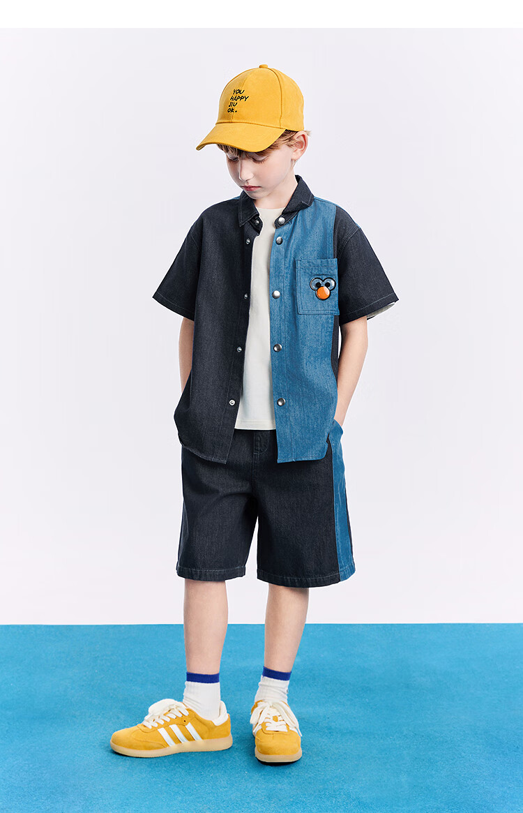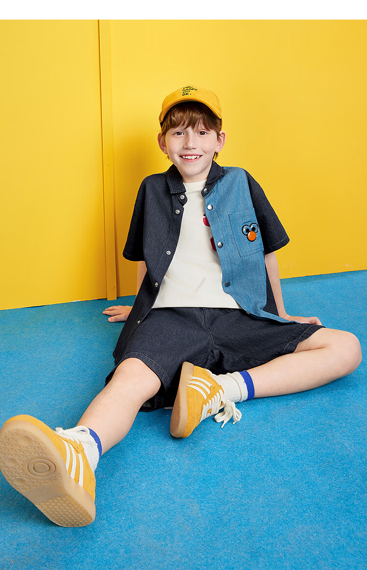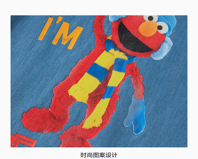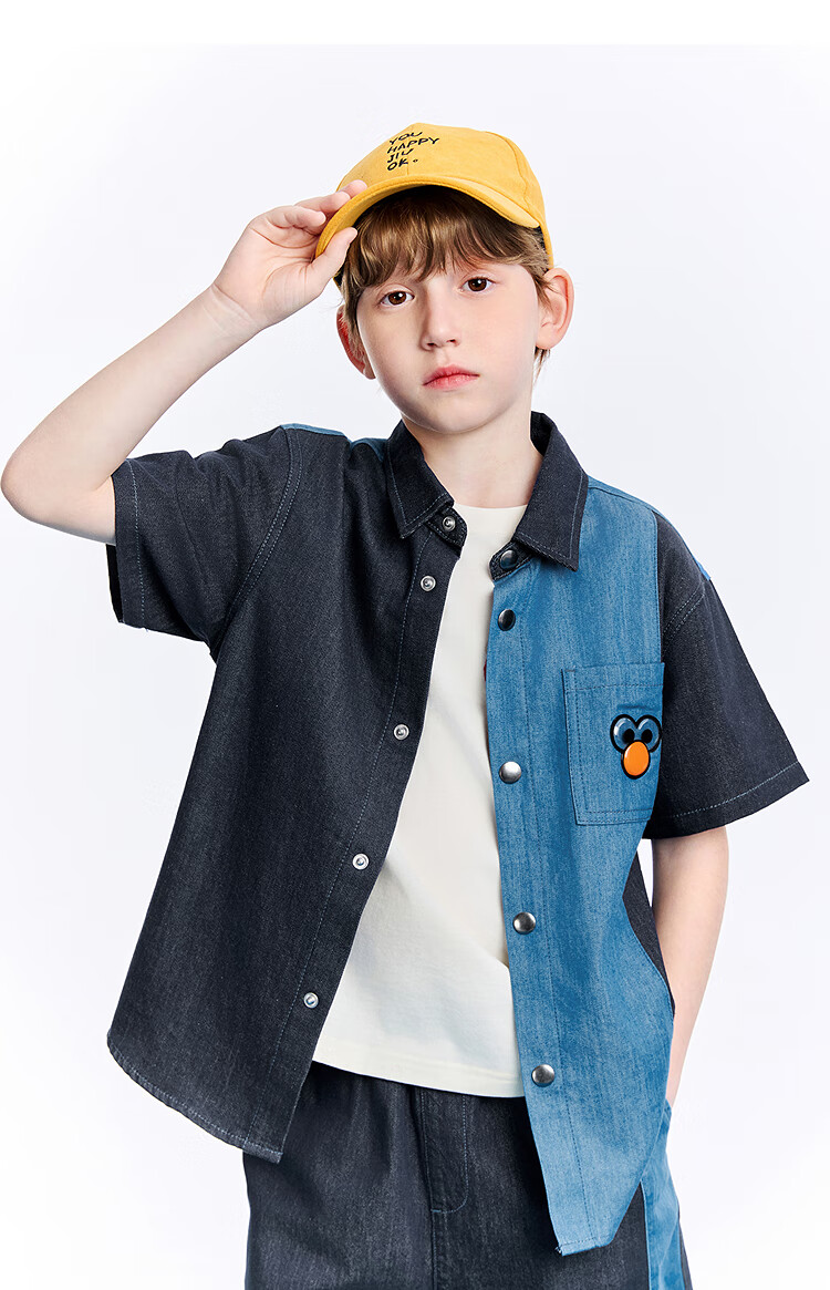 MiniPeace Sesame Street co-branded Peacebird children's clothing boys' comfortable denim shirt jacket short-sleeved summer dress denim dark blue 140