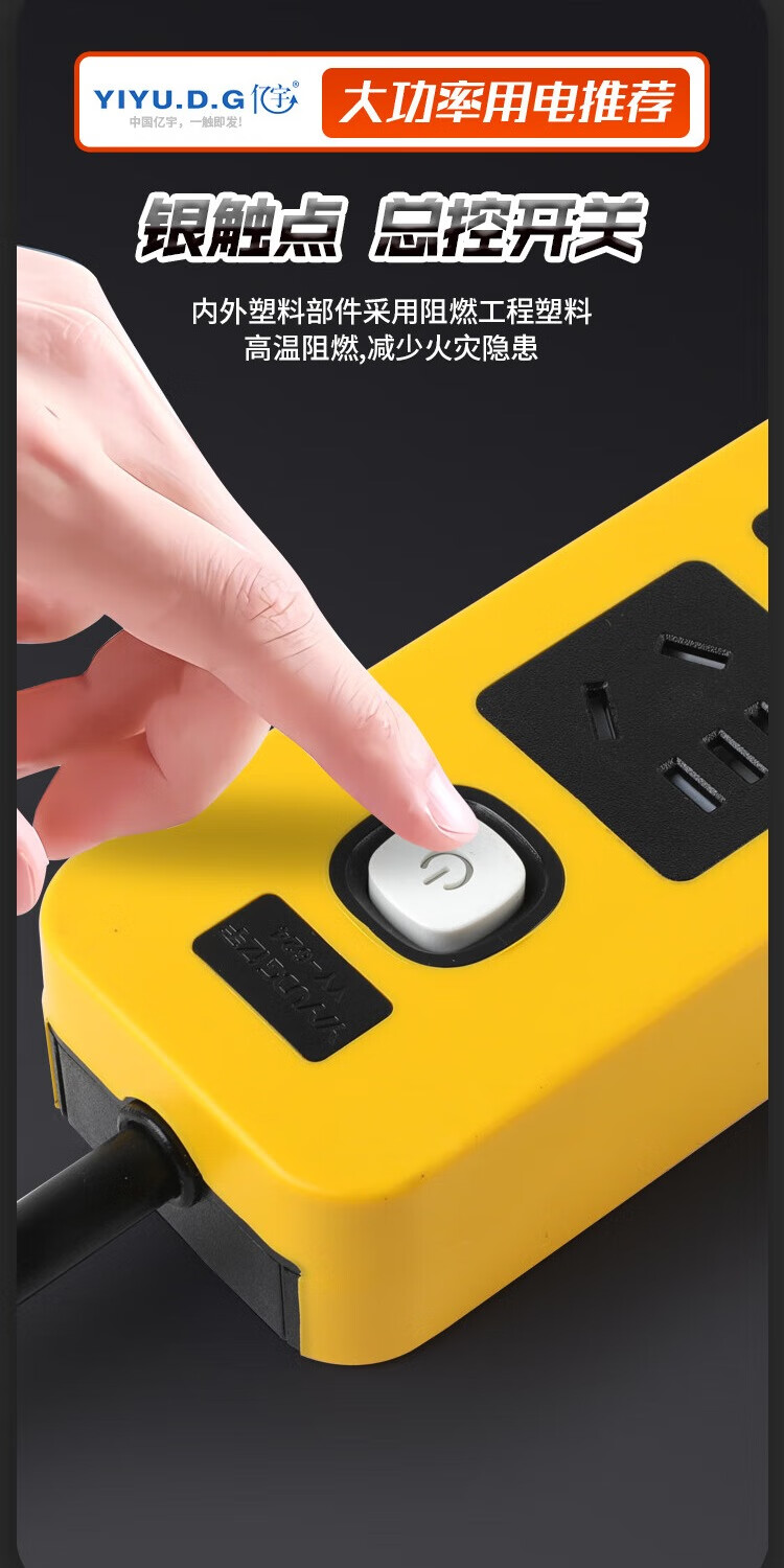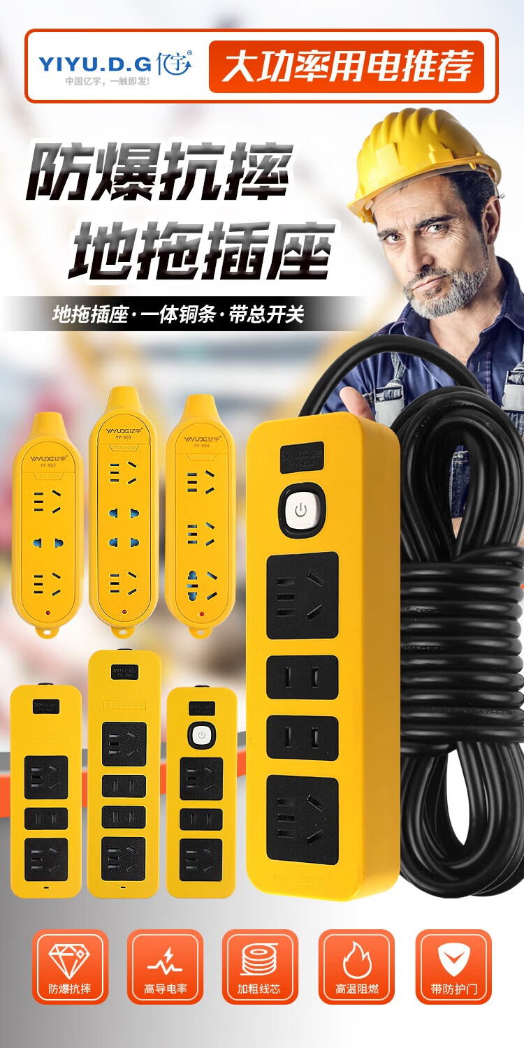 Construction site power strip high power 10A/16A anti-fall engineering household power strip air conditioning water heater induction cooker special socket construction site special socket 14 holes with switch with 10 meters