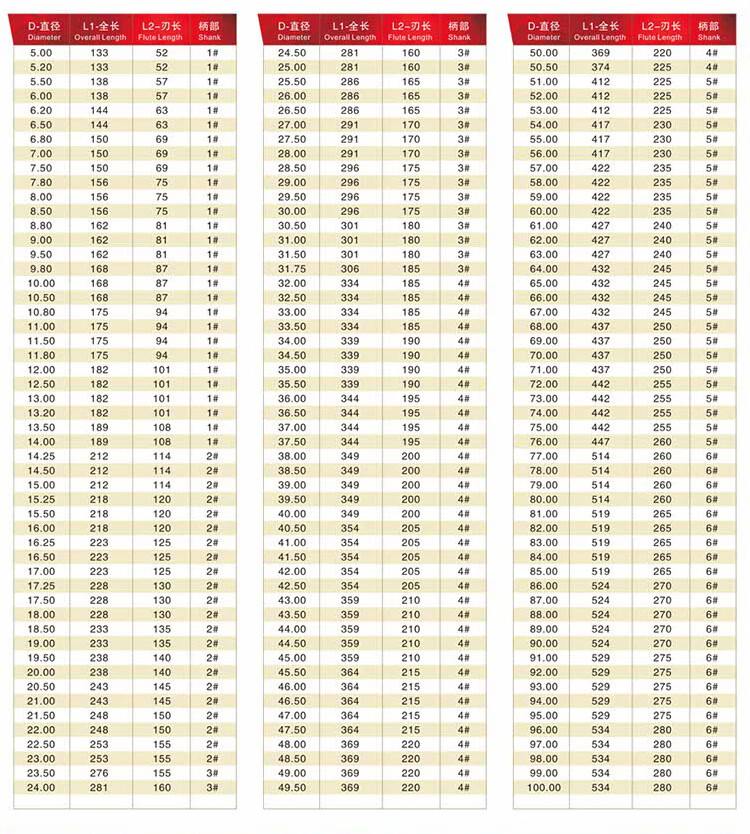 FHJQB Harbin cone drill/cone shank twist drill bit 45/46/47/48/49/50/51/52/53/54/57/62mm 45*210*359*4#