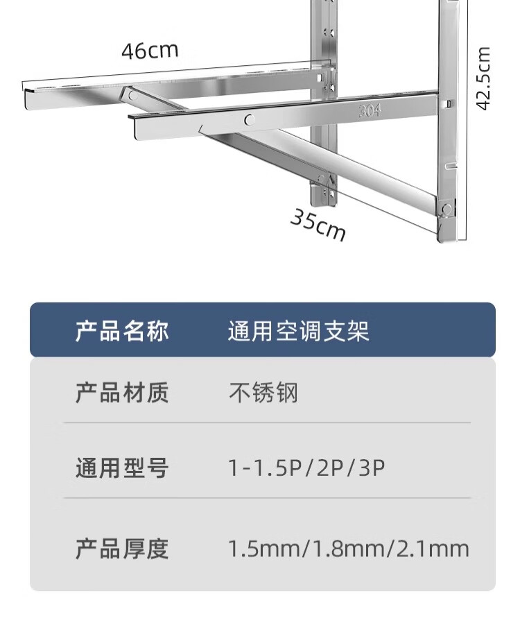Shijing is suitable for Gree air conditioner outdoor unit bracket 304 stainless steel air conditioner shelf Midea Xiaomi Haier and other air conditioners universal 1-1.5P stainless steel thickened version - with stainless steel screws