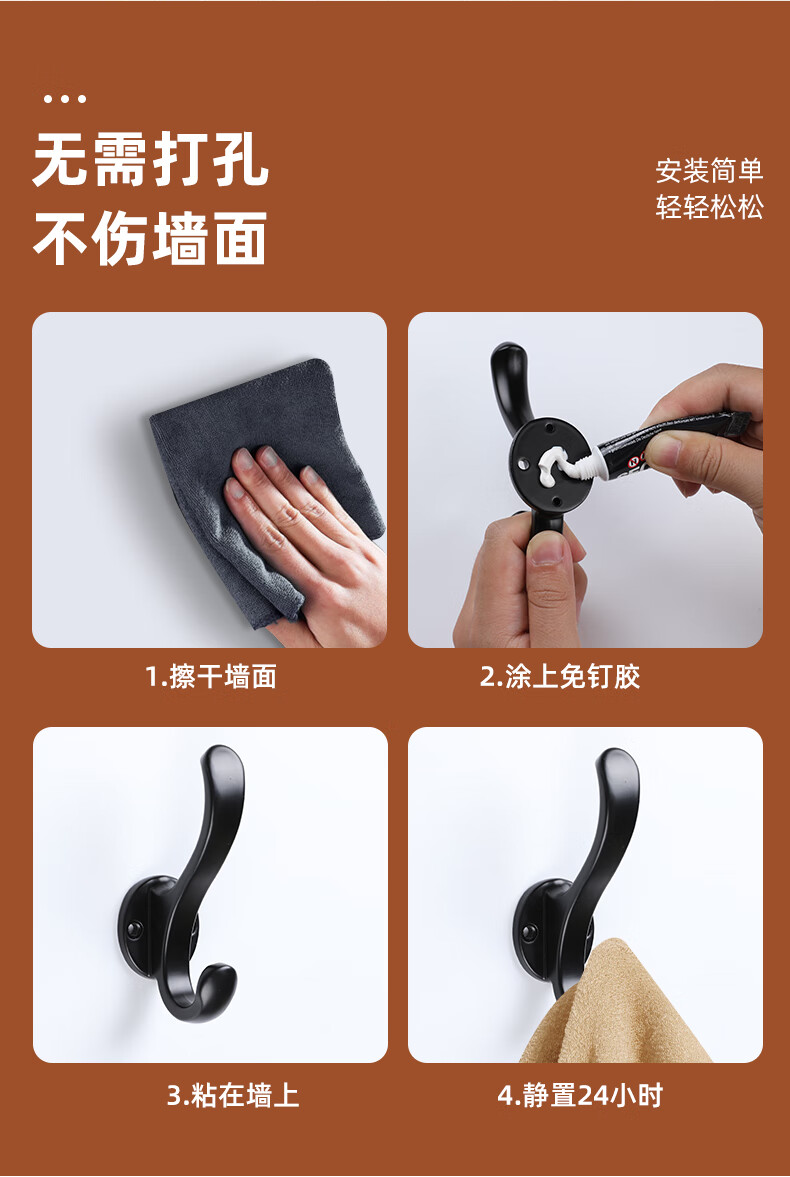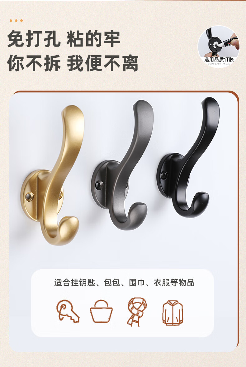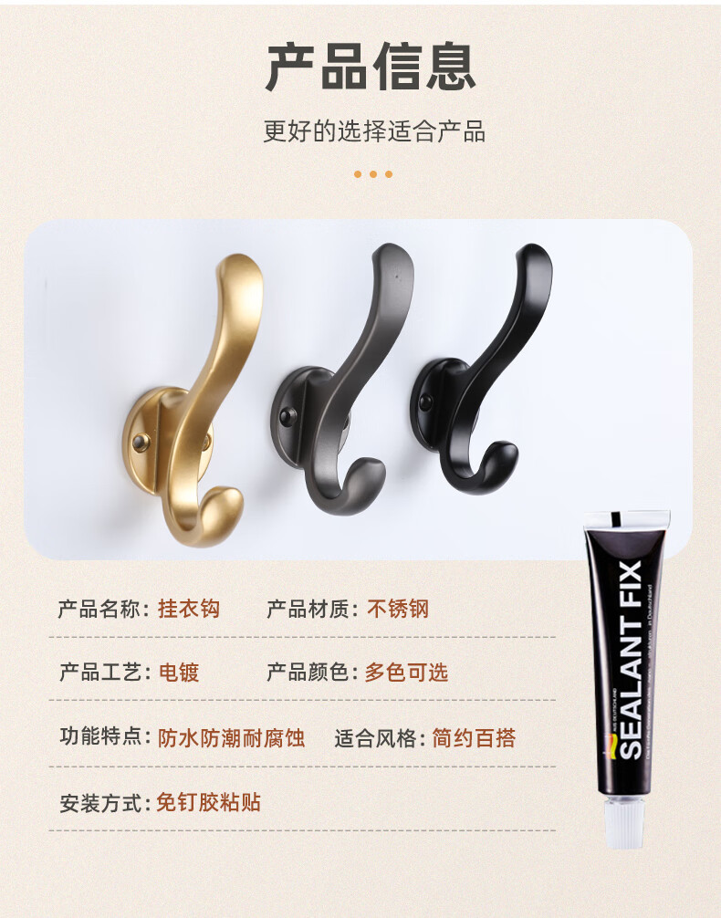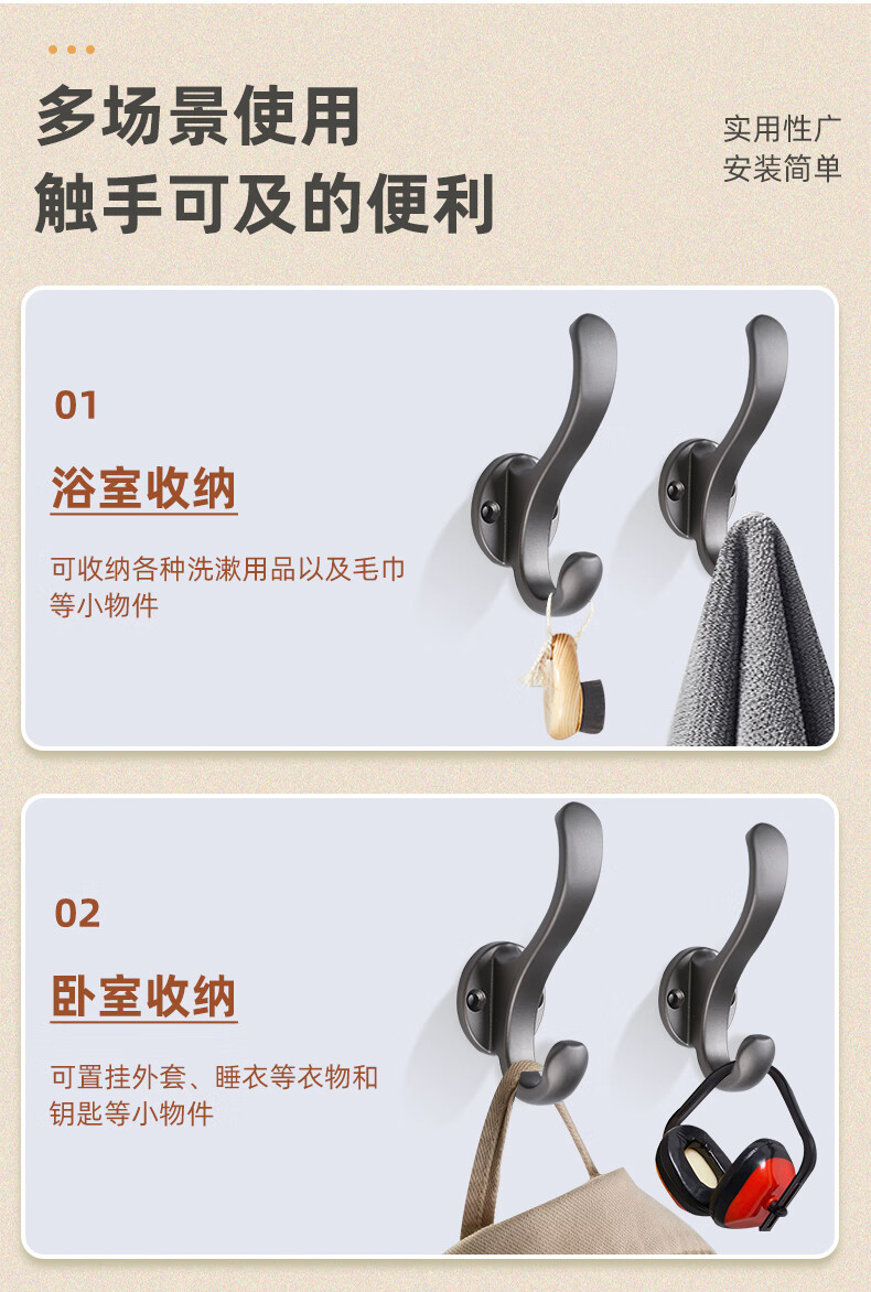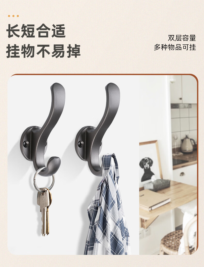 DUTRIEUX coat hooks, door entrance, shoe cabinets, wardrobes, clothes hooks, punched holes, fixed wall-mounted metal coat hooks, single, gray upgrade, 60 grams (screws and glue included)