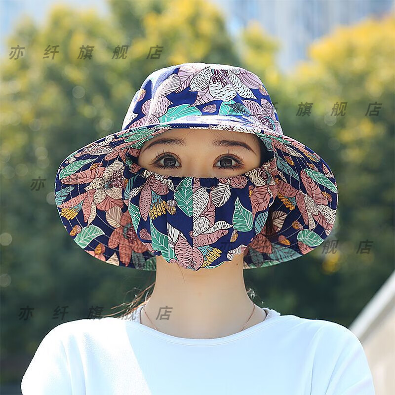 Yixian new summer sun hat, sun protection mask, integrated face covering, outdoor sun hat for farm work, tea hat for women, blue leaves and flowers