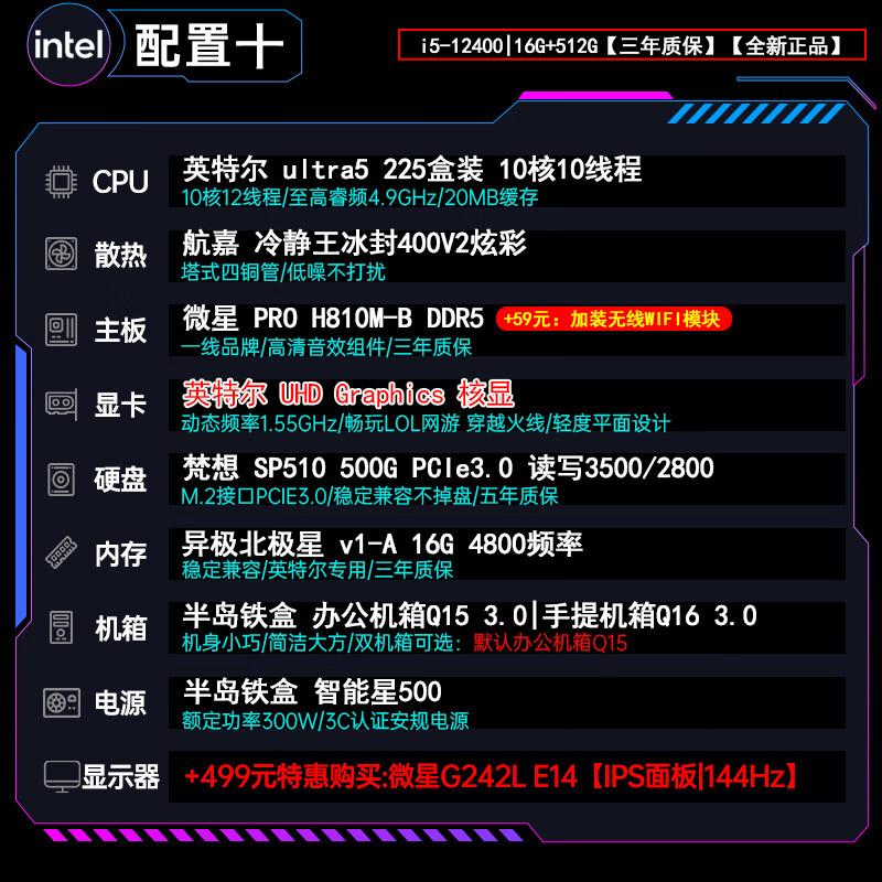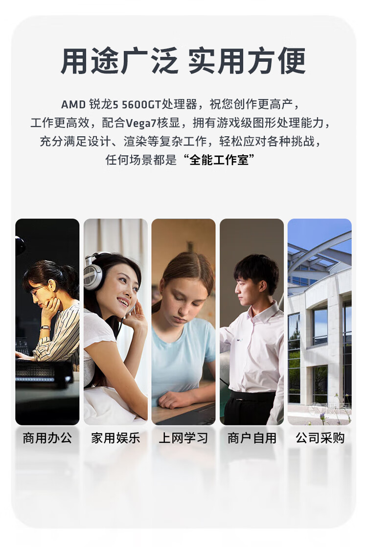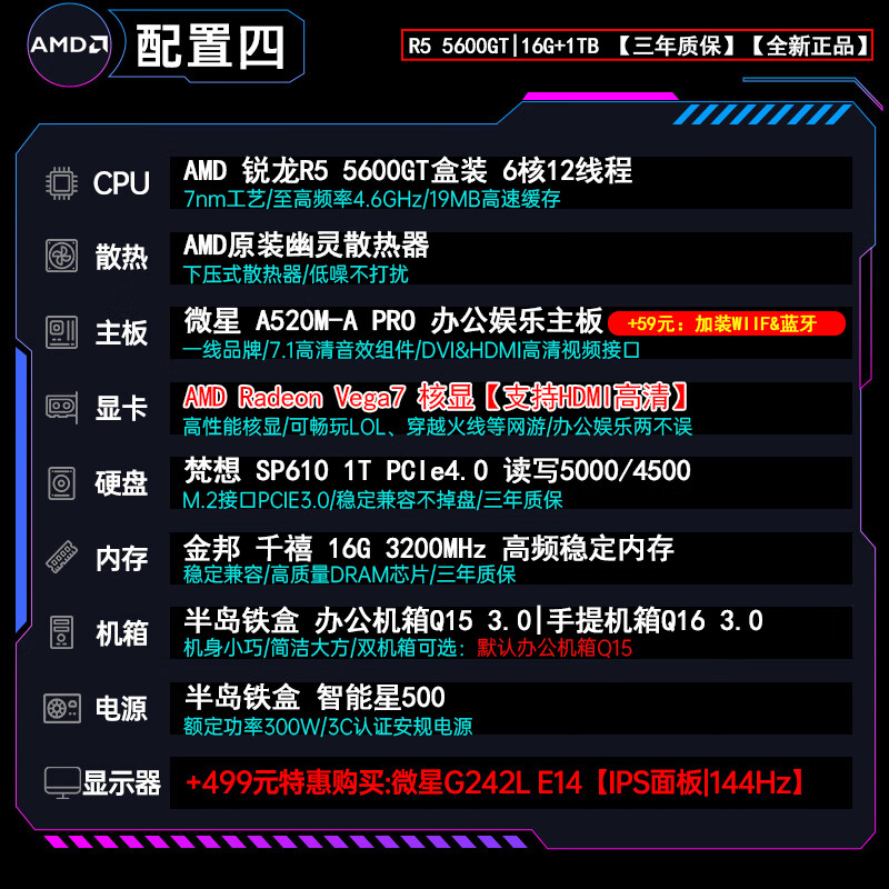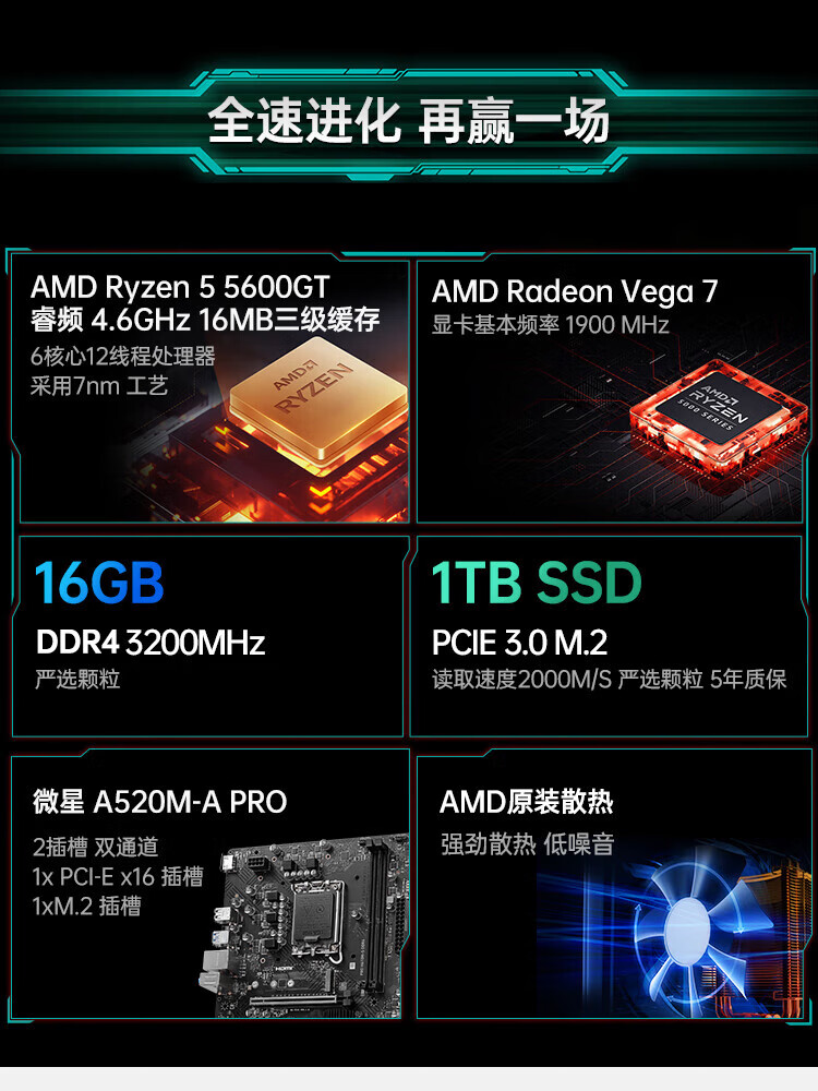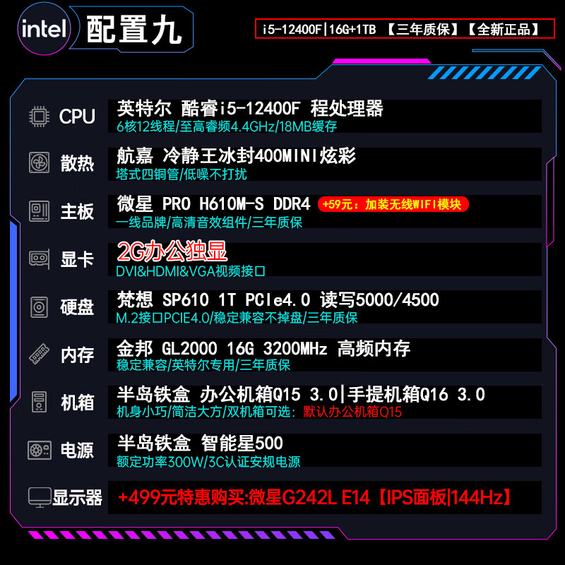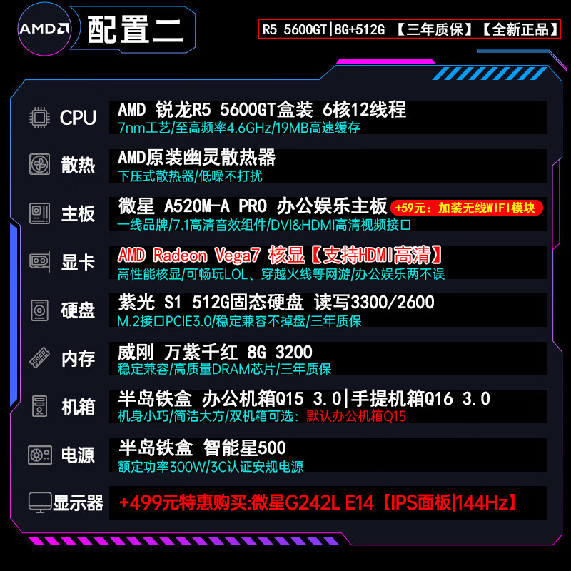 GAINWARD Intel Core i3 13100f/i5 12400/225 boxed assembly desktop office computer 5600gt commercial amd host online class LOL game home desktop computer configuration three boxed 5600GT丨16G+512G