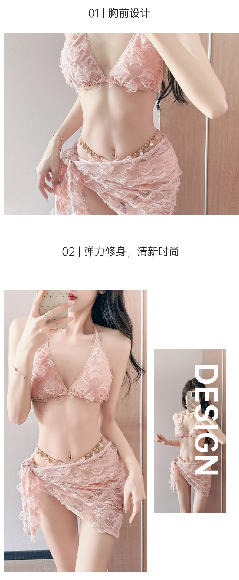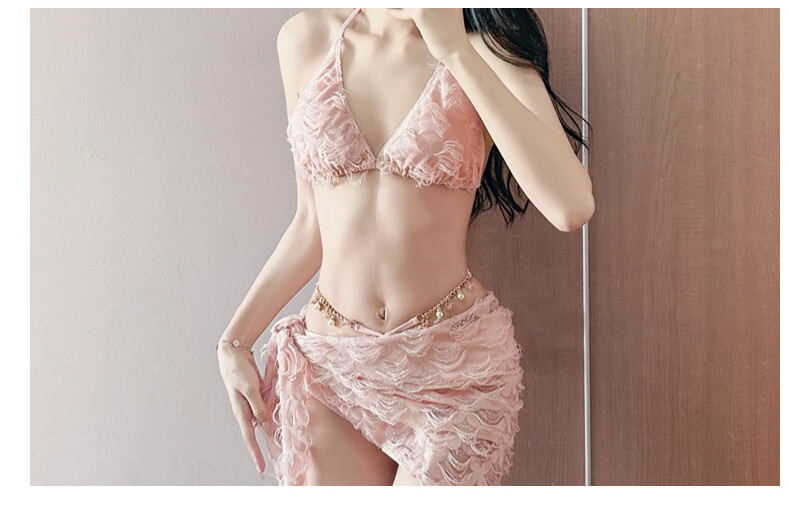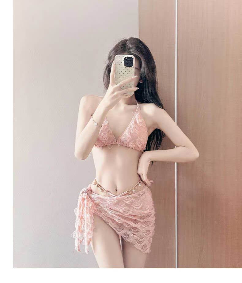 Guiqi split sexy swimsuit for women in hot springs bikini three-piece hot girl pure desire small breasts gathered slimming seaside vacation pink one size