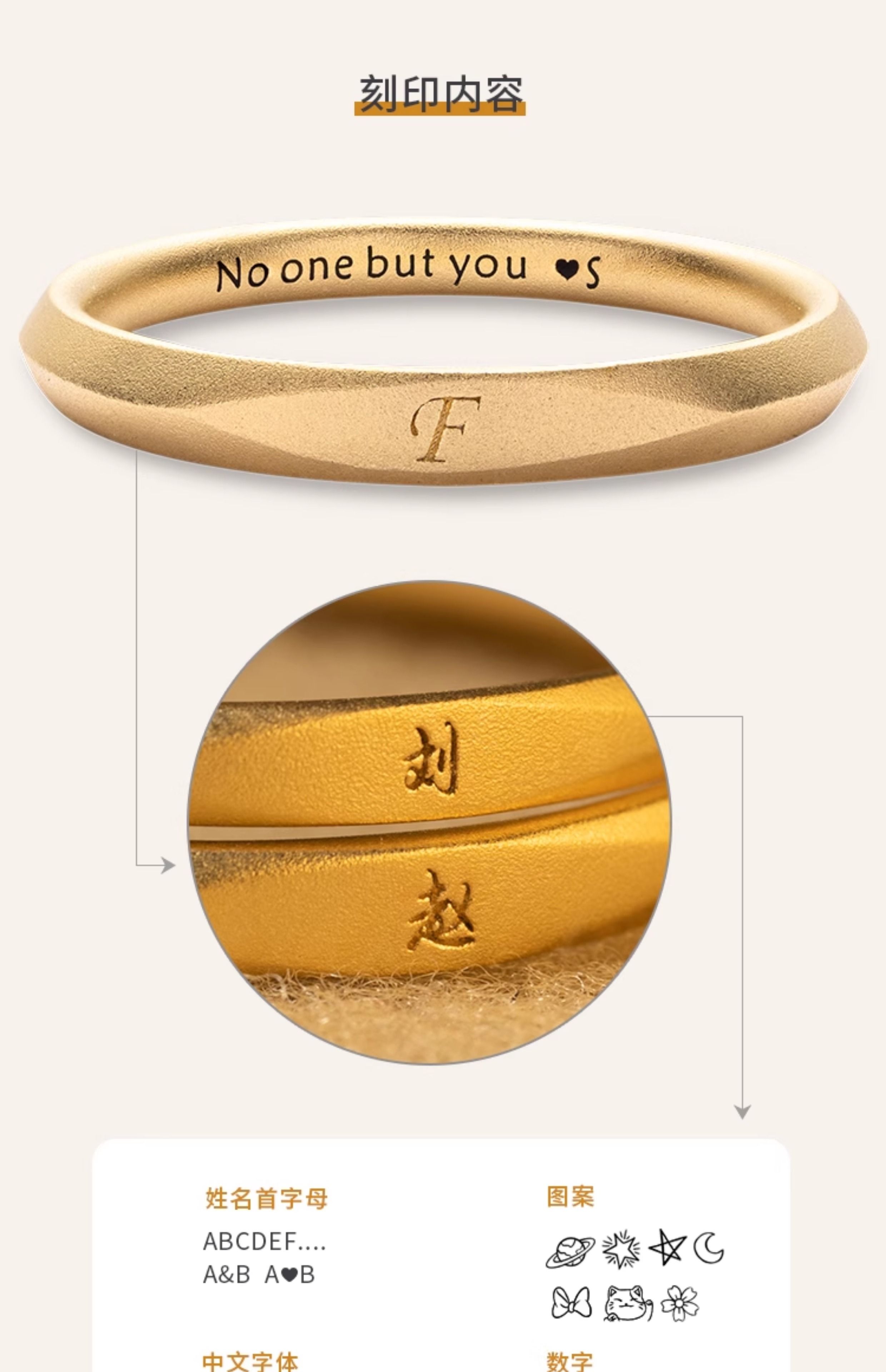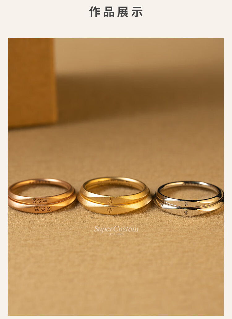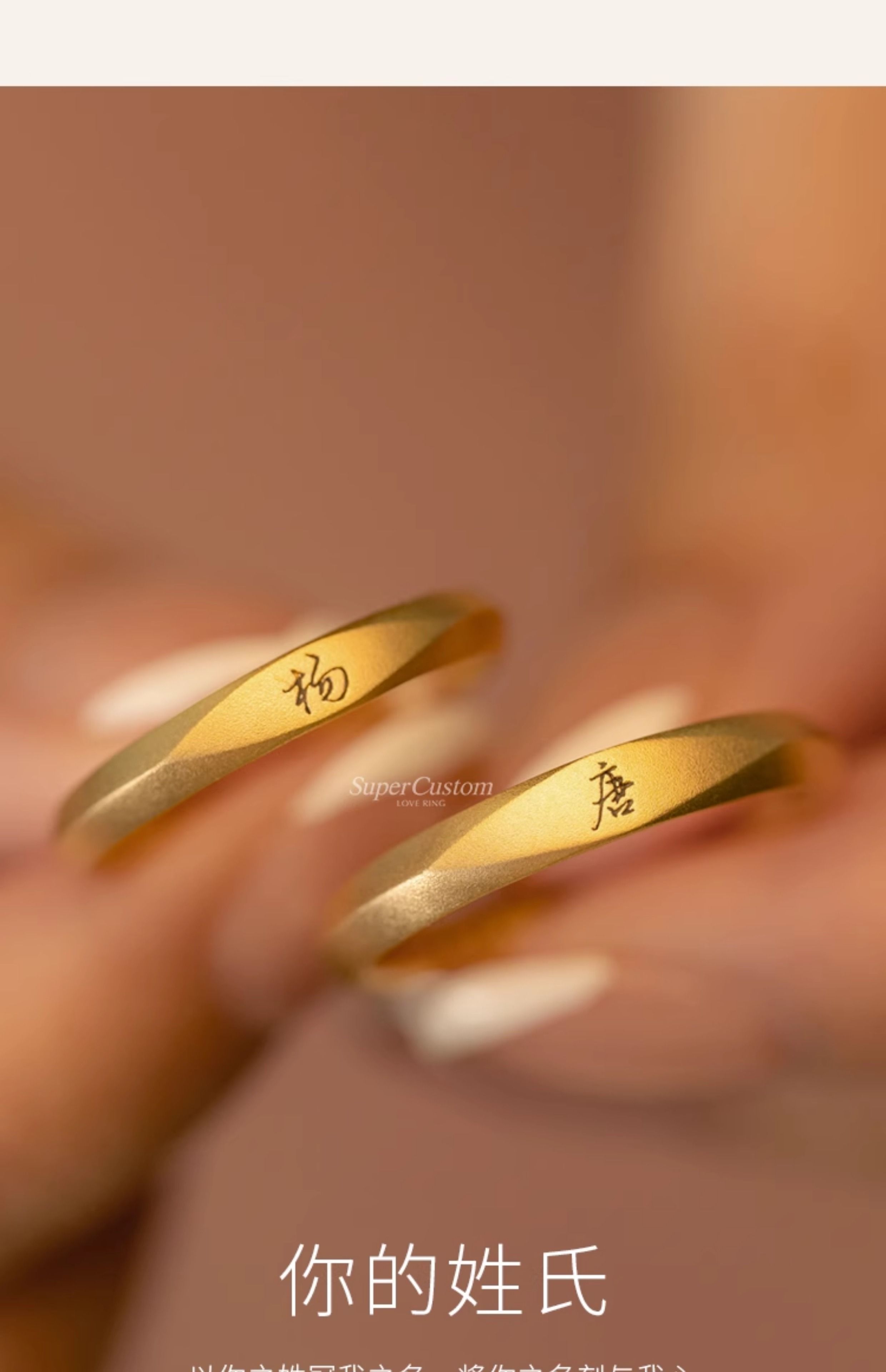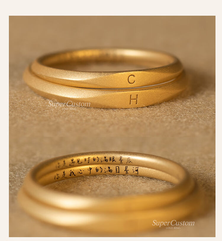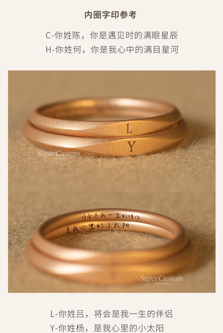 Mo Qianxue pairing ring supercustom wedding ring 18k gold wedding couple ring Your name Your last name 18K yellow Rice gold For other ring numbers, please contact customer service
