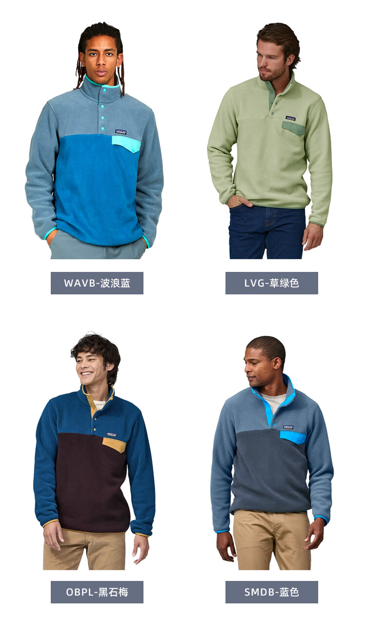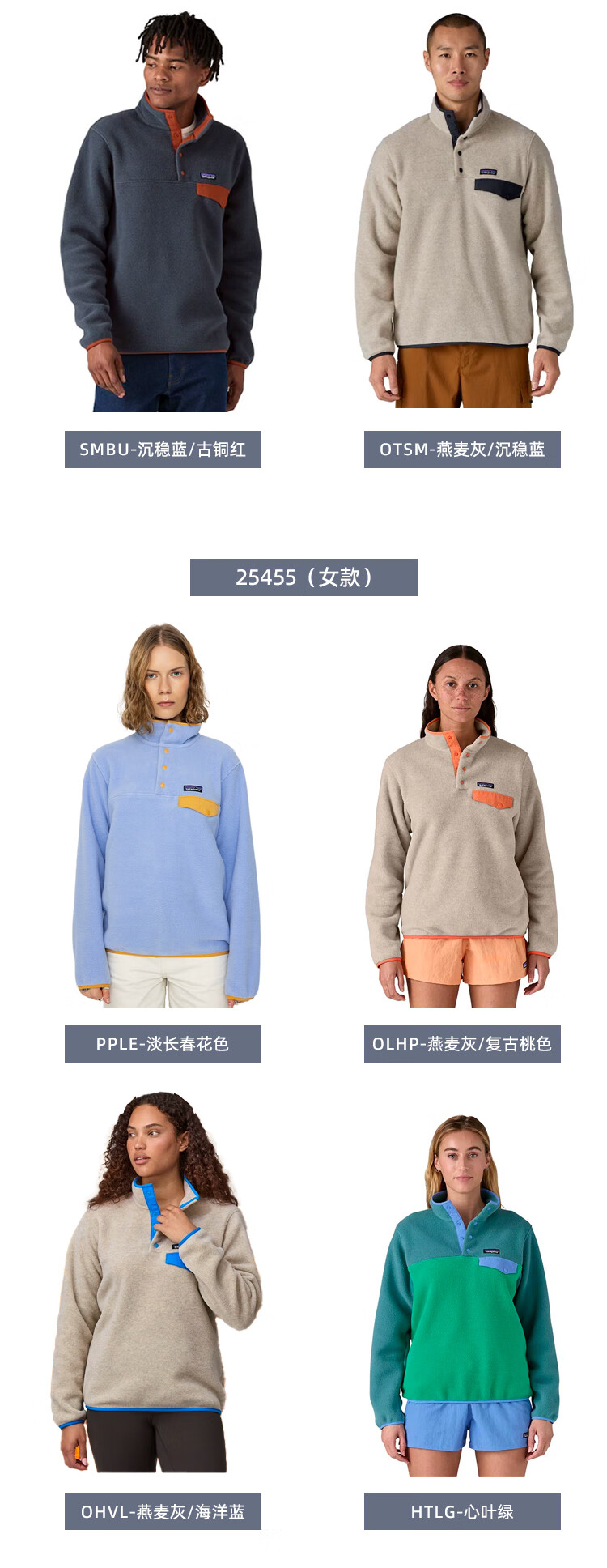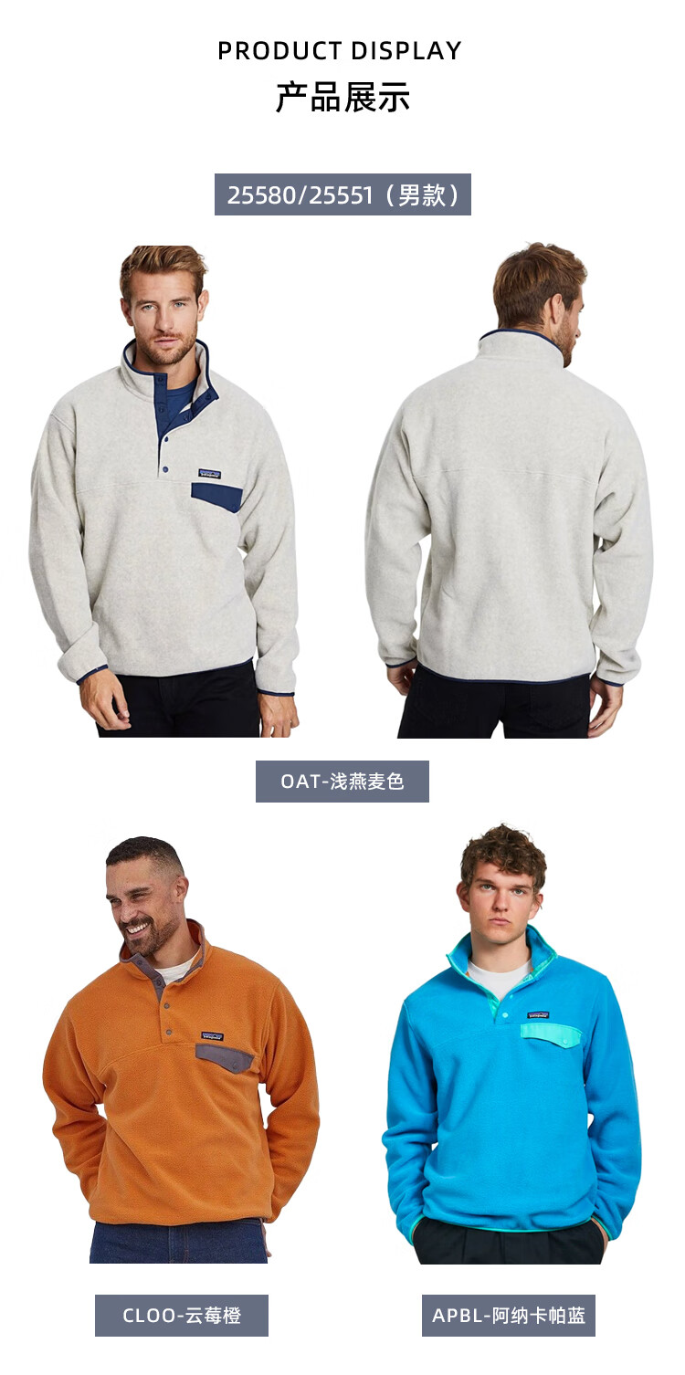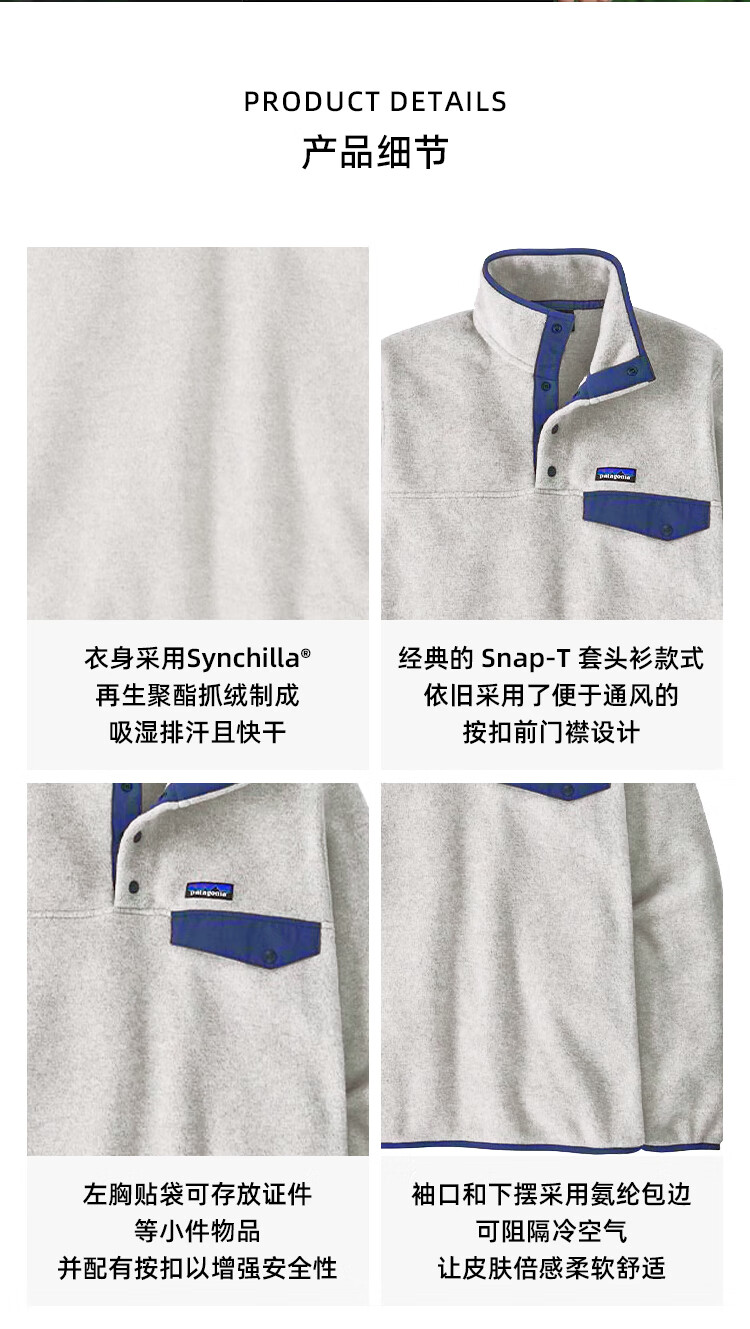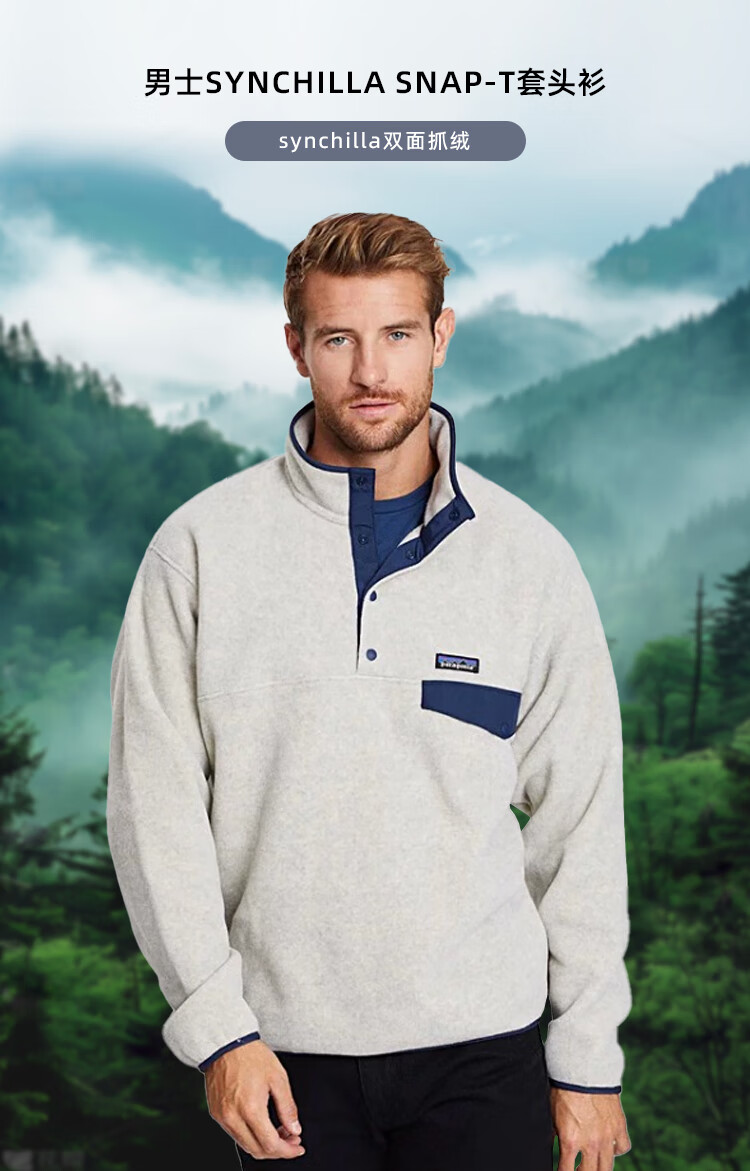 Patagonia short woolen coat Synch Snap-T style fleece thermal top for men and women 25580 25580-Men-OTSM-Oatmeal Gray/Calm Blue M