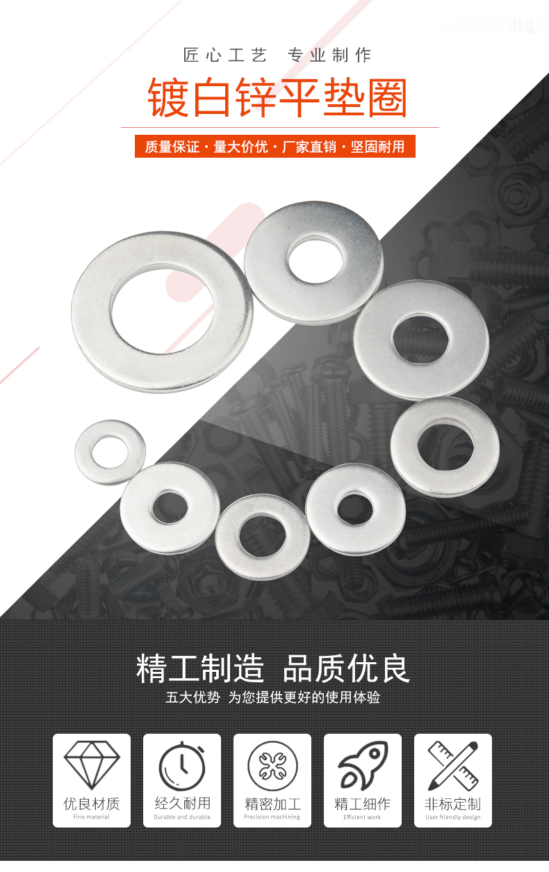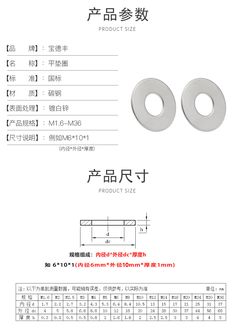 Baodefeng galvanized gasket washer washer metal screw gasket flat washer flat gasket national standard standard parts M4x18x0.8 500 pieces