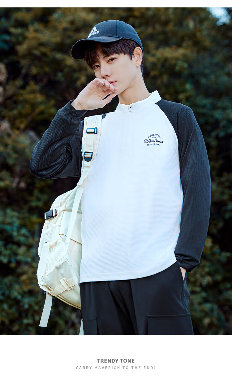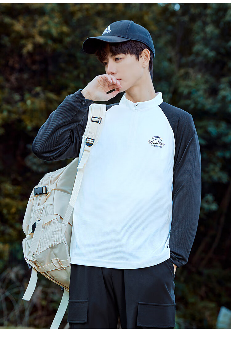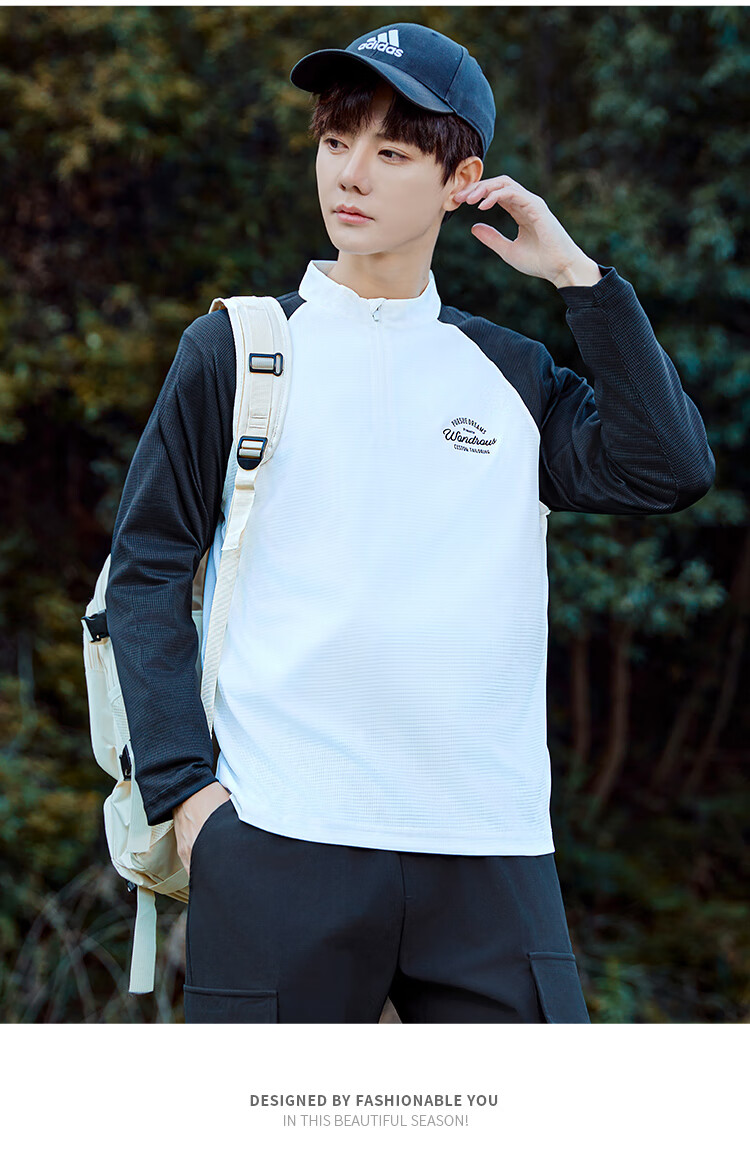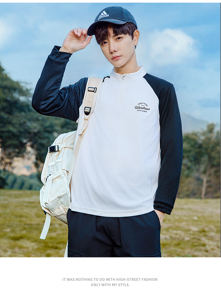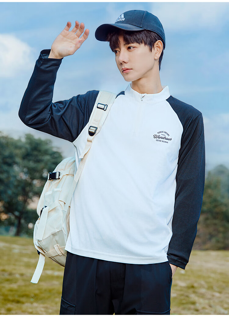TEEK quick-drying cycling clothes casual long-sleeved t-shirt men's 2025 summer outdoor sports mountaineering half-zip tops SA1797 white black S