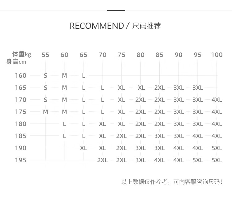 China (cm) 160-165/84-86 165-170 / 88-90 167-172 / 92-96 168-173 / 98-102 170-176 / 106-110