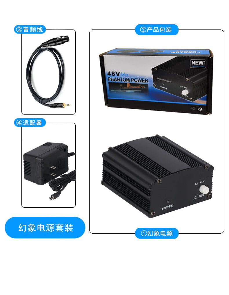 MICGRS48V phantom power professional recording live broadcast condenser microphone power supply sound card recording singing dubbing studio large diaphragm microphone stable buffer outdoor microphone amplifier phantom power + female to 3.5 + XLR male bus
