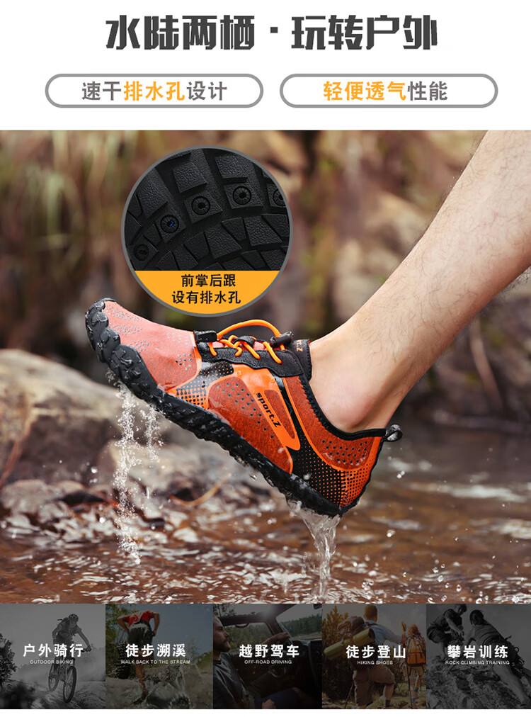 Jiao Xia Sail outdoor river tracing shoes for men and women, non-slip amphibious speed intervention water shoes, breathable swimming shoes, men's fishing shoes 1901 black and gray 46 normal shooting