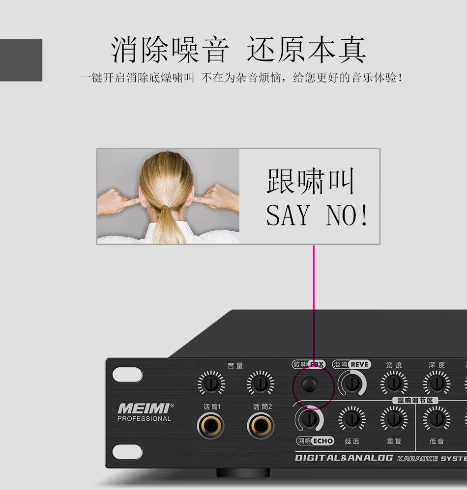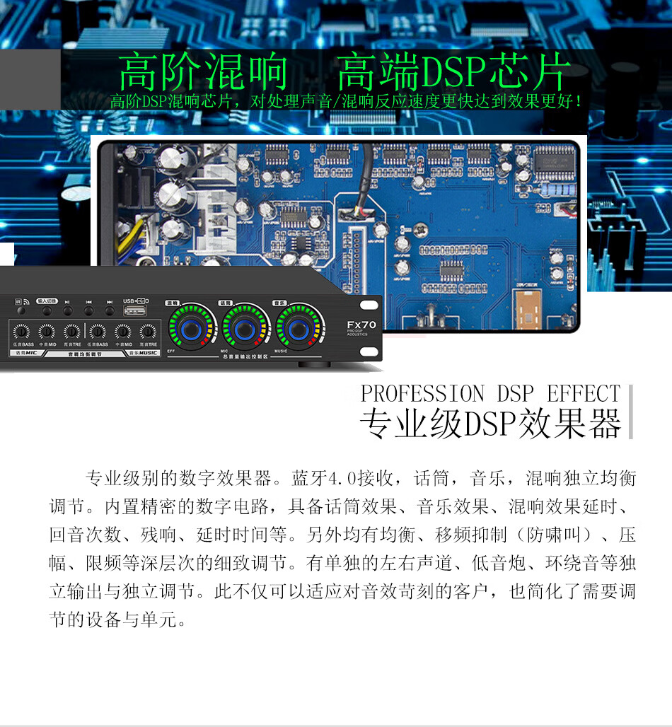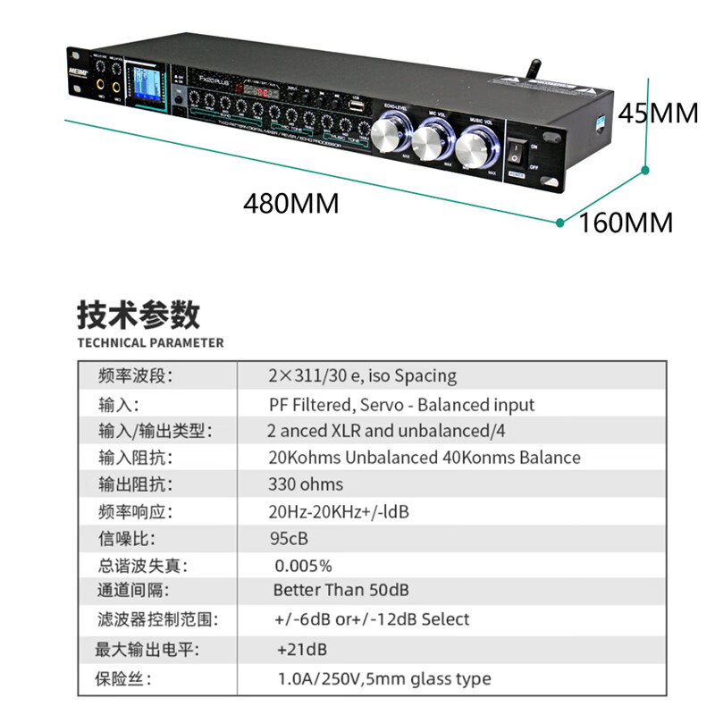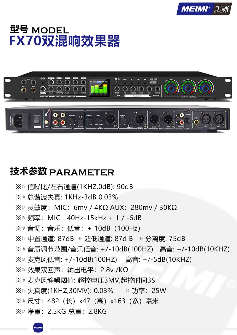 MEIMI FX70 pre-amp effector professional stage home KTV conference microphone anti-howling reverberation audio processor ktv stage Bluetooth player sound card decoder FX20 black color screen level-standard power cord remote control