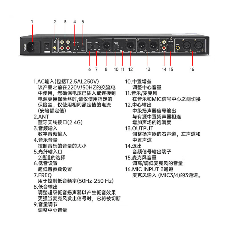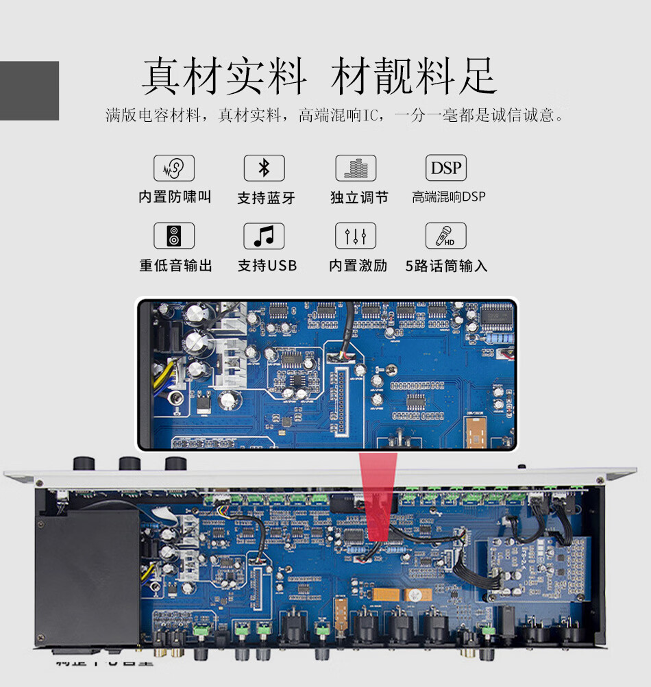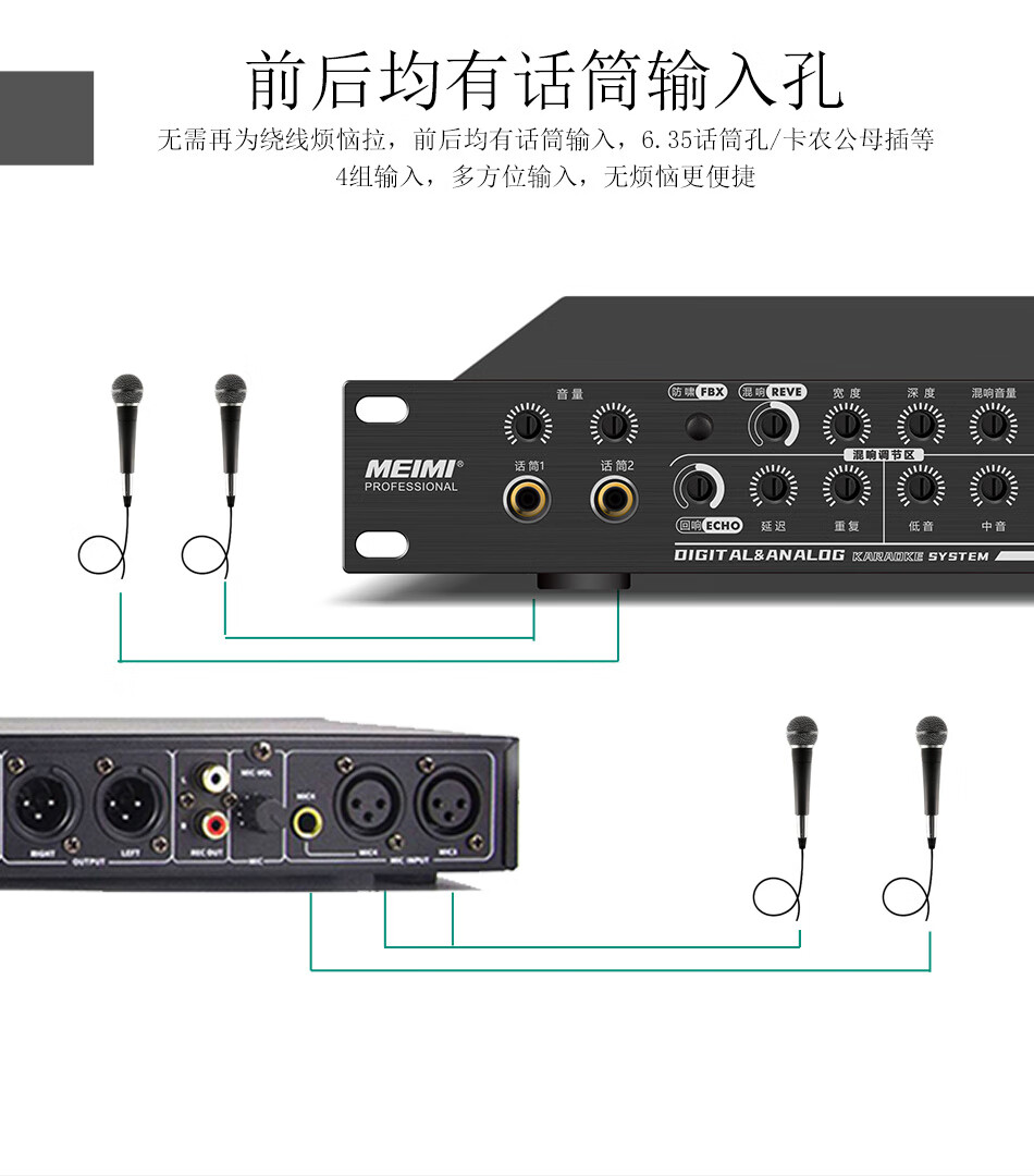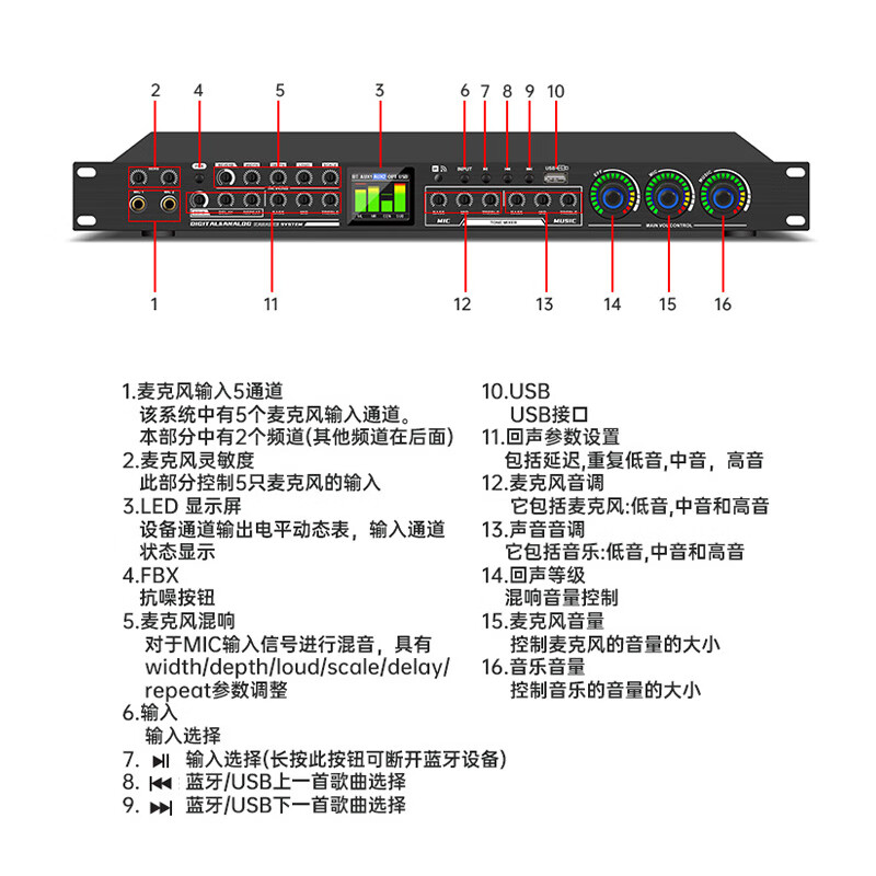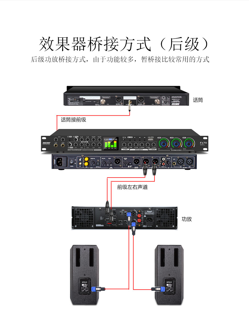 MEIMI FX70 pre-amp effector professional stage home KTV conference microphone anti-howling reverberation audio processor ktv stage Bluetooth player sound card decoder FX20 black color screen level-standard power cord remote control