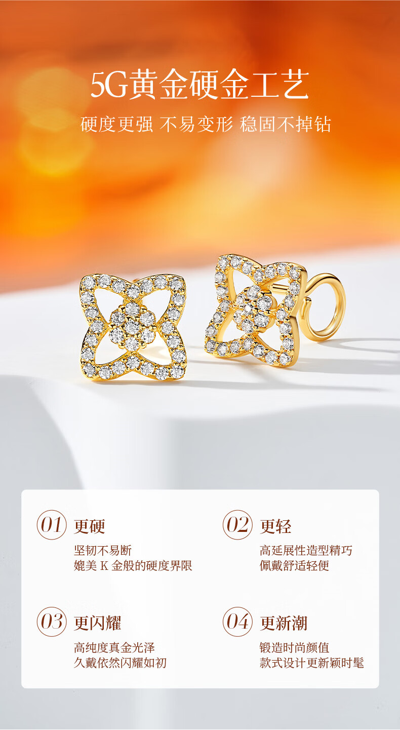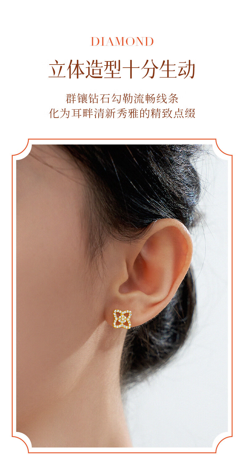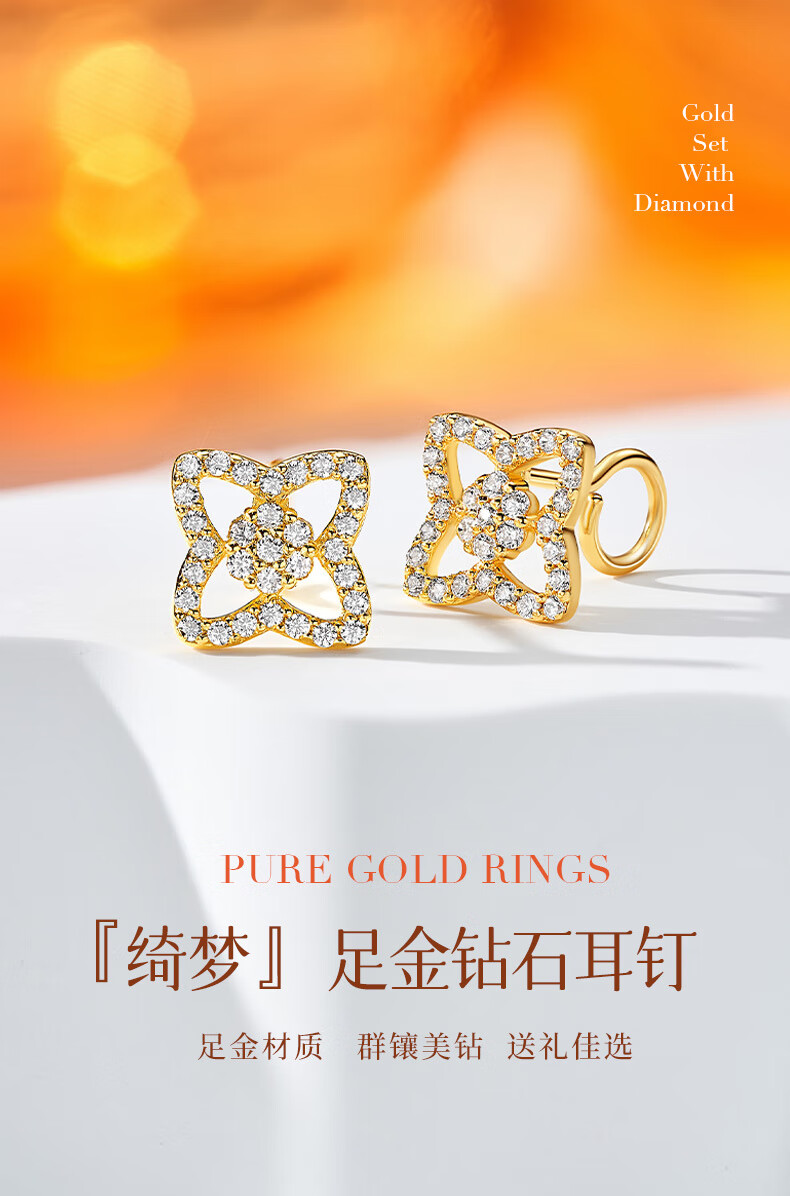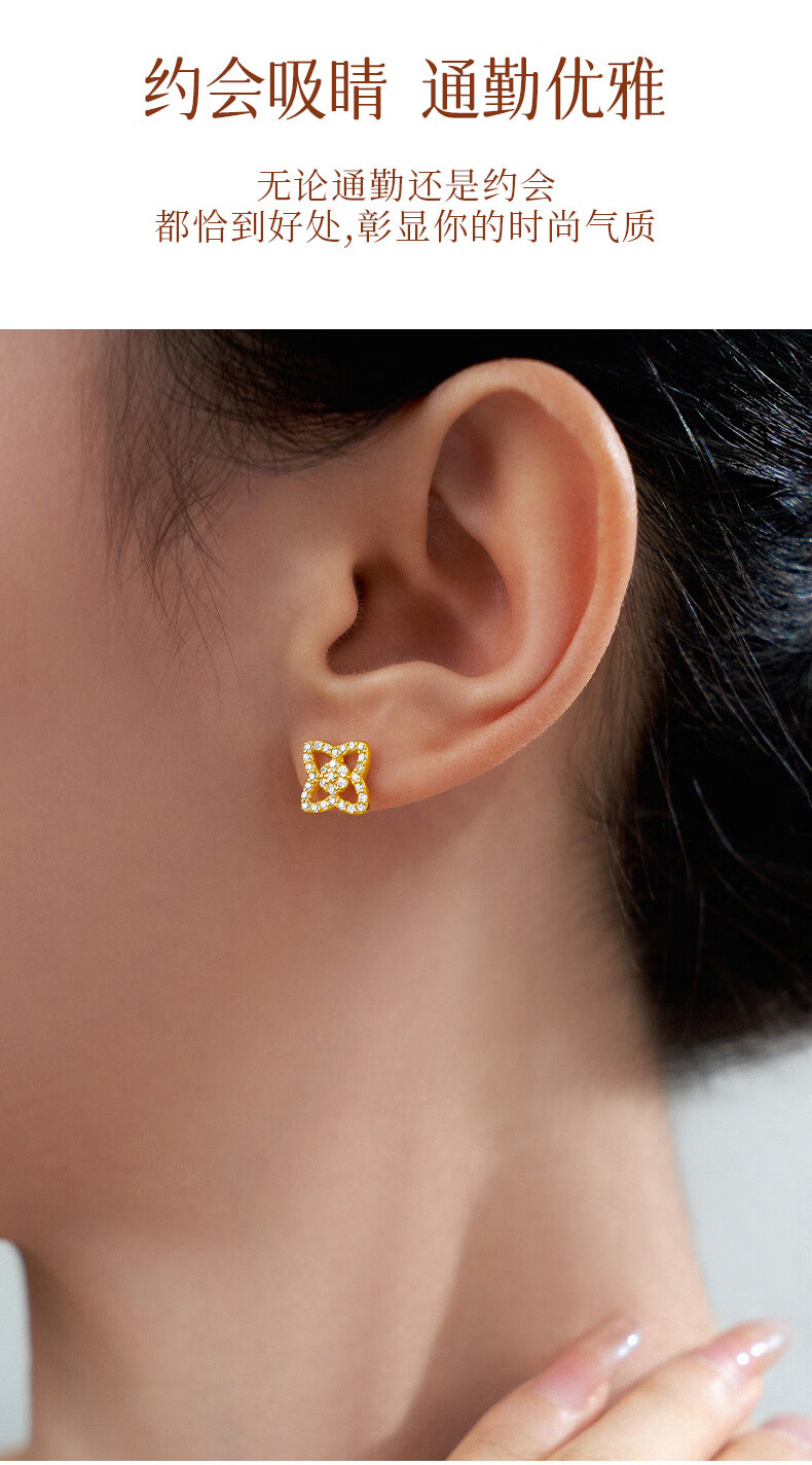 Happy Diamond Gold Diamond Earrings for Women 999 Pure Gold Diamond Earrings Proposal Wedding Diamond Earrings for New Year Gift to Girlfriend About 2.1g Pure Gold + Diamond Total 36 Points