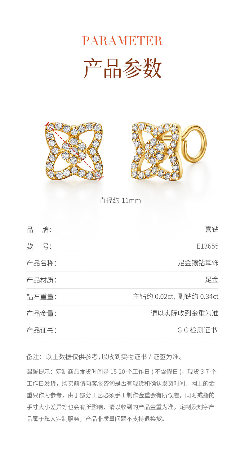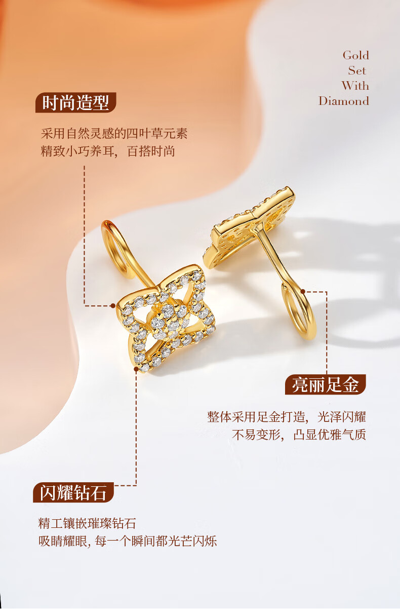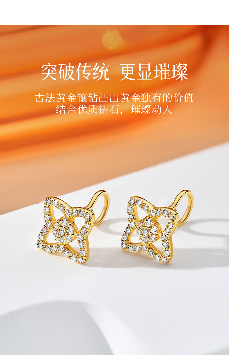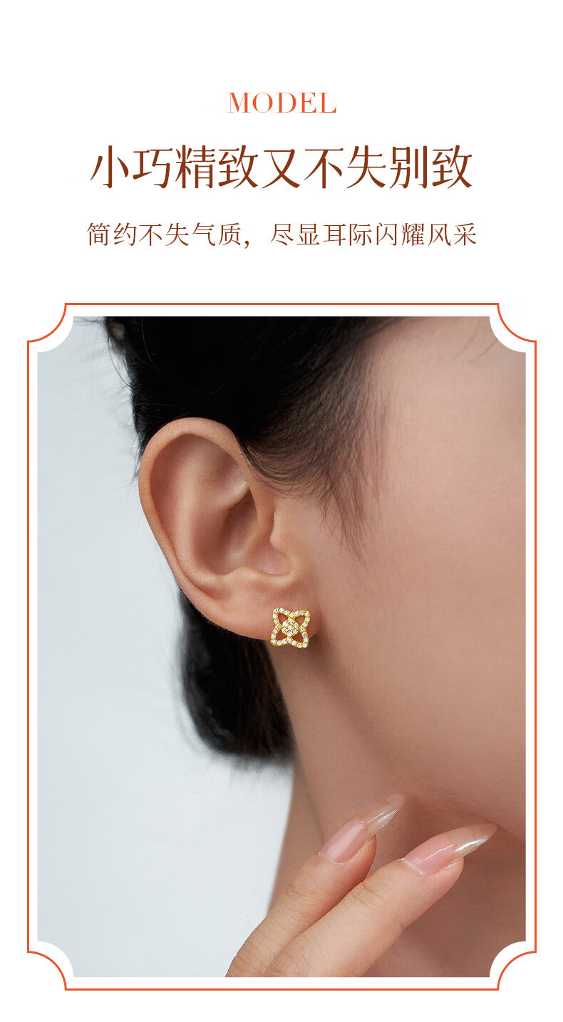 Happy Diamond Gold Diamond Earrings for Women 999 Pure Gold Diamond Earrings Proposal Wedding Diamond Earrings for New Year Gift to Girlfriend About 2.1g Pure Gold + Diamond Total 36 Points