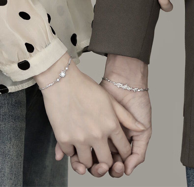 QUAMER Couple Bracelet Silver Bracelet Pair New Design Sensational Valentine's Day Gift Boyfriend Cat Fish Love Bracelet Pair