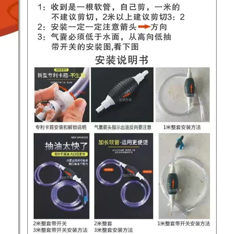 Li Shen oil pump manual water and oil suction pump car urea gasoline diesel self-priming refueling hose complete set of 1.5 meters tube + 1 air bag + 2 metal clamps