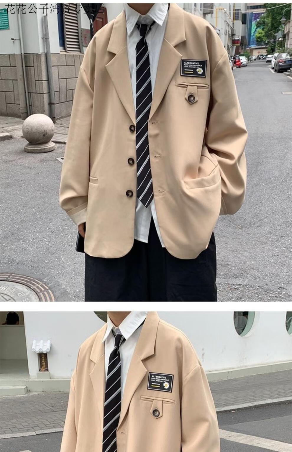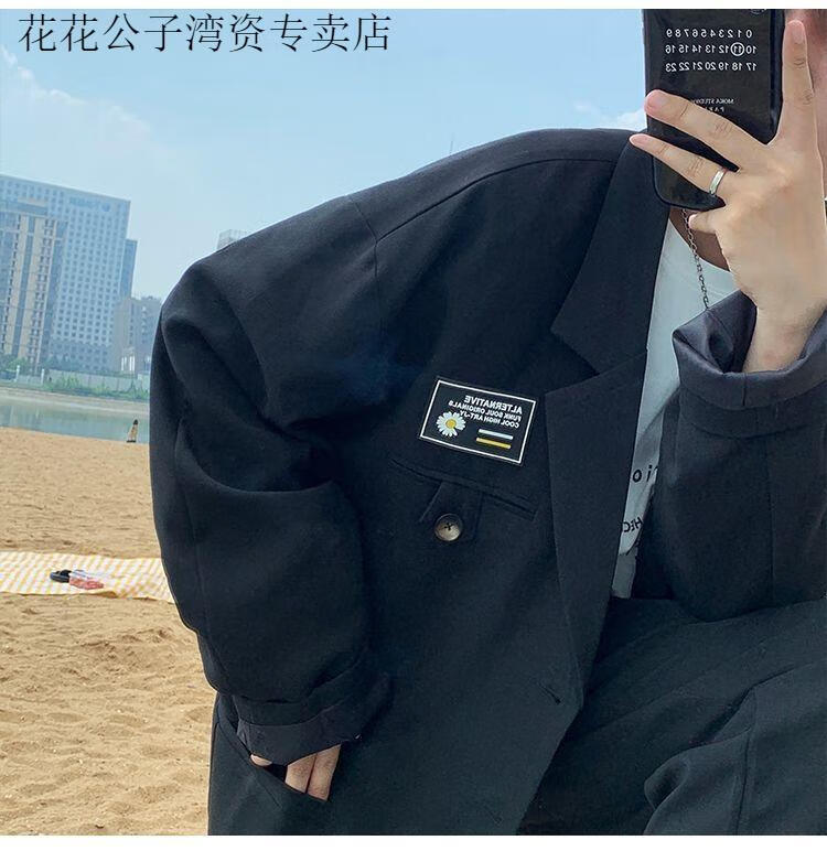 Playboy (PLAYBOY) DK uniform suit suit men's college style loose student handsome suit shirt trousers three-piece set spring and autumn four-piece suit black suit + shirt + trousers + M