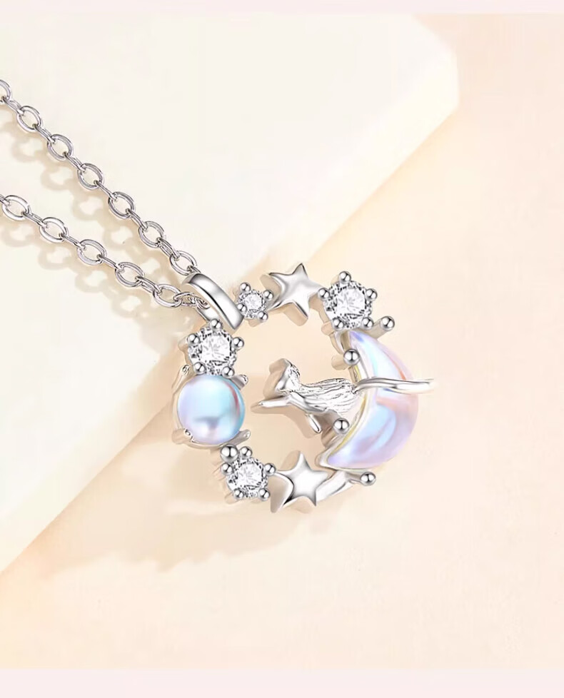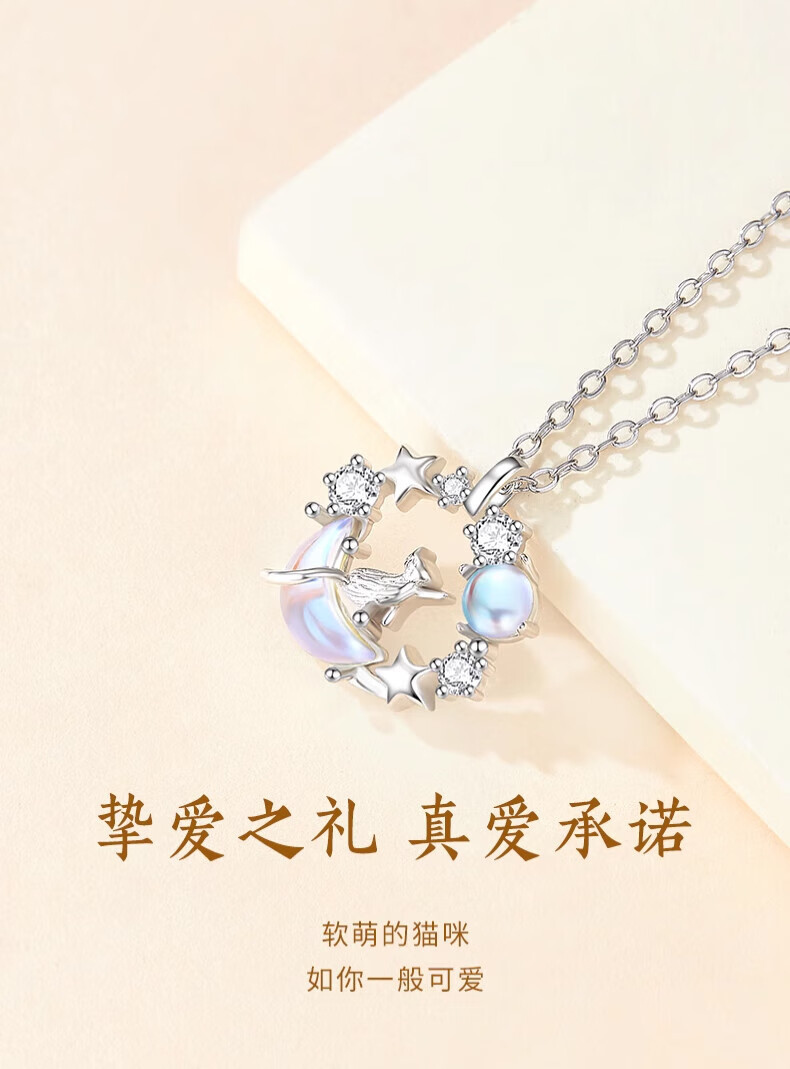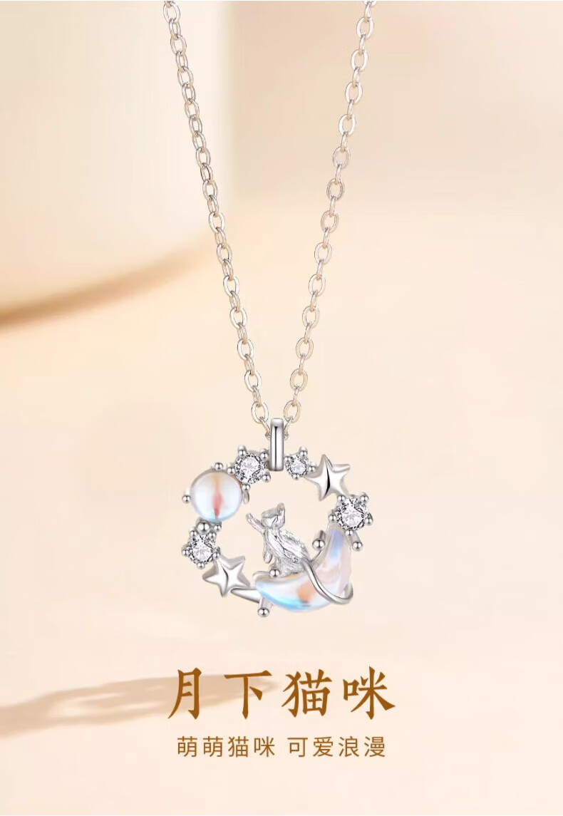 CHINA GOLD 925 Silver Star and Moon Cat Necklace Girls Light Luxury Pendant Valentine's Day Birthday Gift for Girlfriend and Wife When/Next Day Delivery 925 Silver Star and Moon Cat Necklace Brand Gift Box