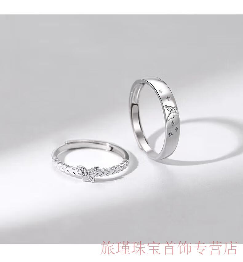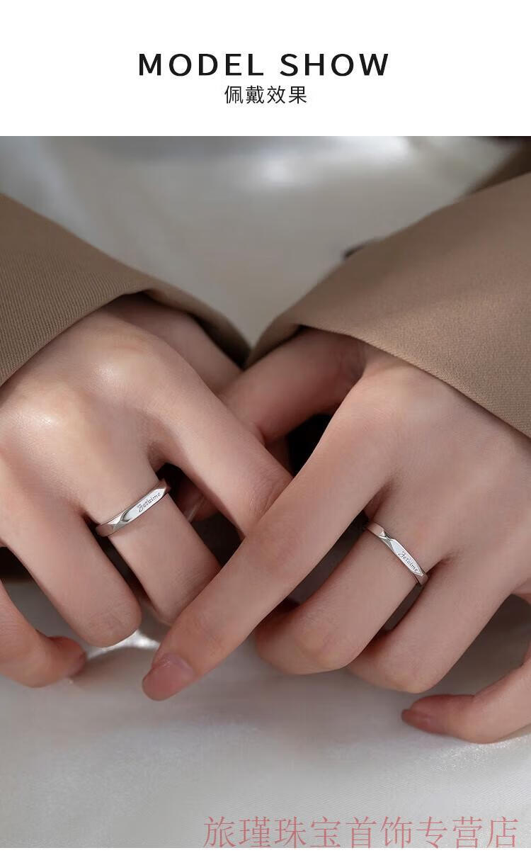CAMPUSKINGLY Old Phoenix French I Love You Pure Silver 9999 Ring Engraving Customized Adjustable Live Mouth Couple Ring French I Love You Pure Silver Ring Pair Lao Feng