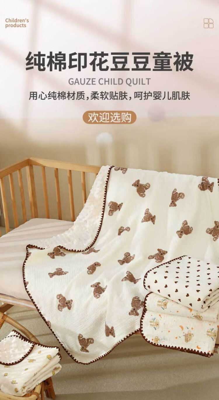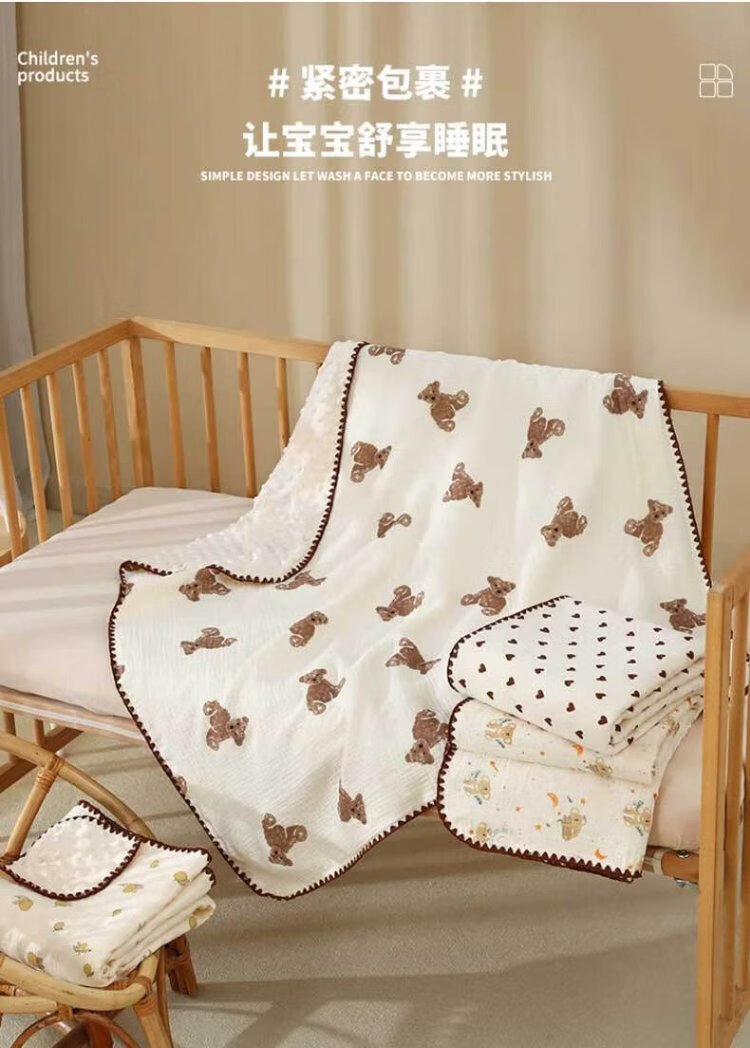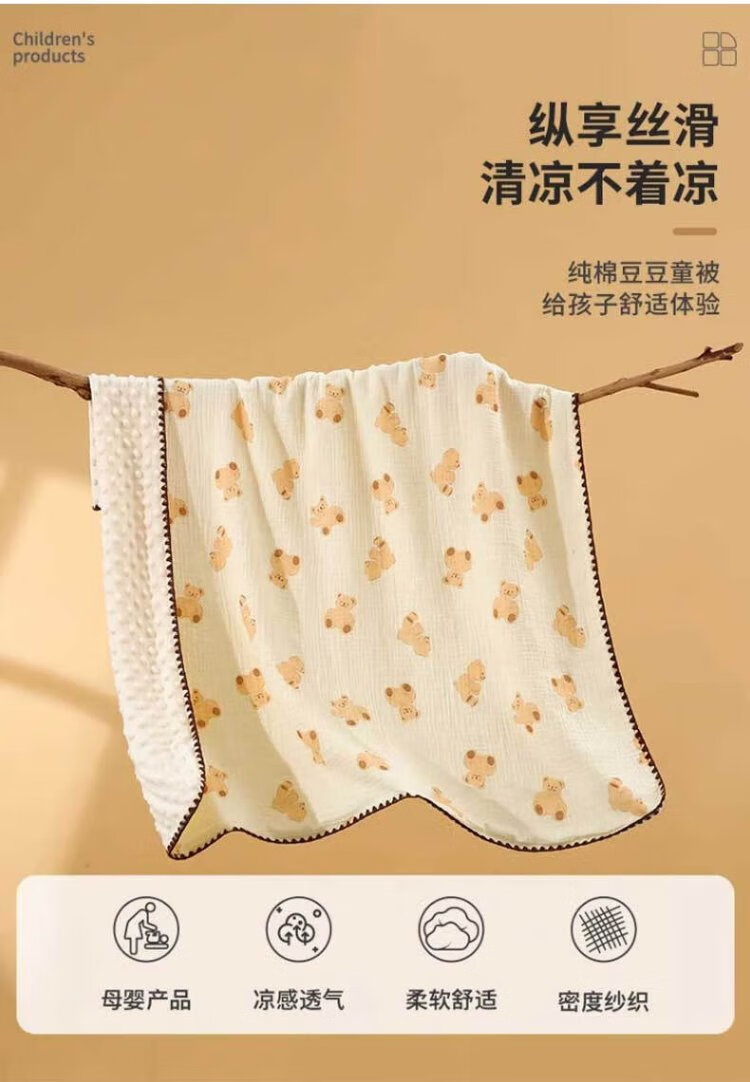 Newborn baby pure cotton beanie blanket four seasons cover blanket pure cotton gauze machine washable toddler autumn and winter nap blanket beanie blanket children's quilt lemon