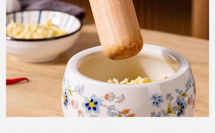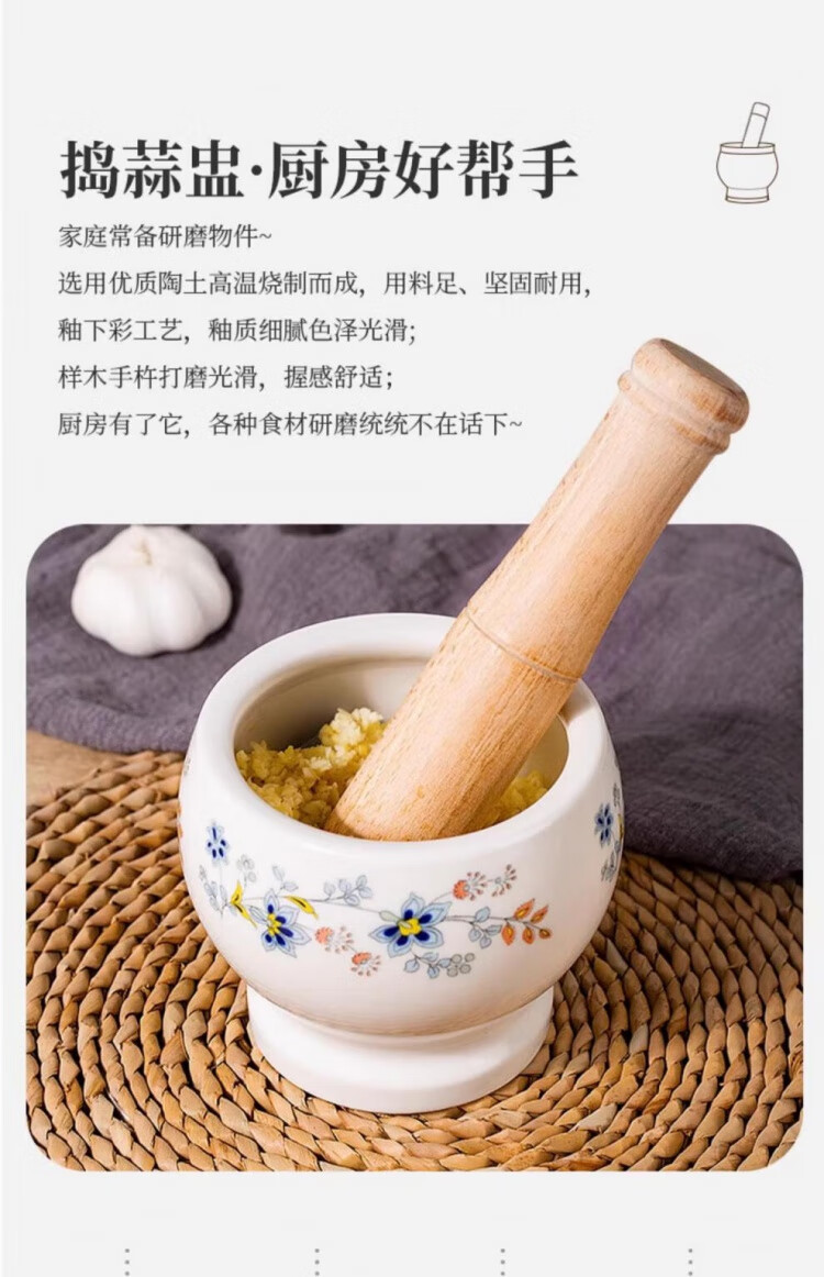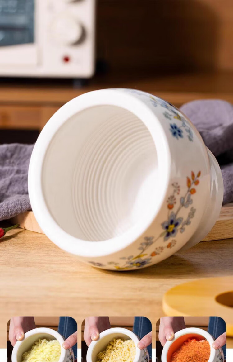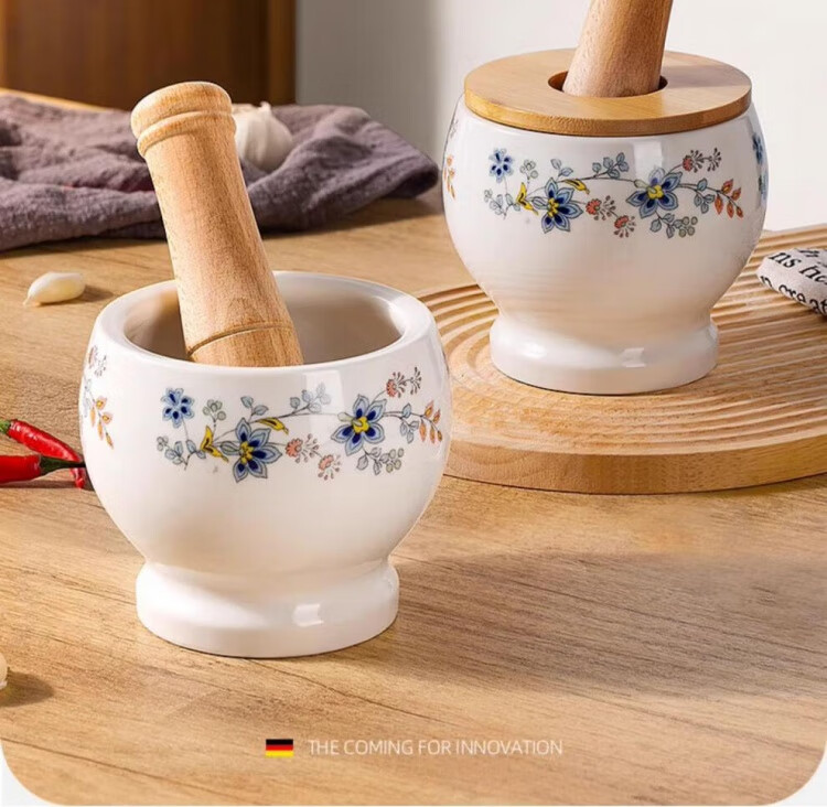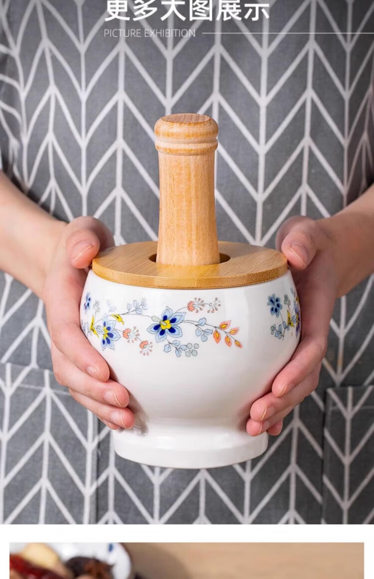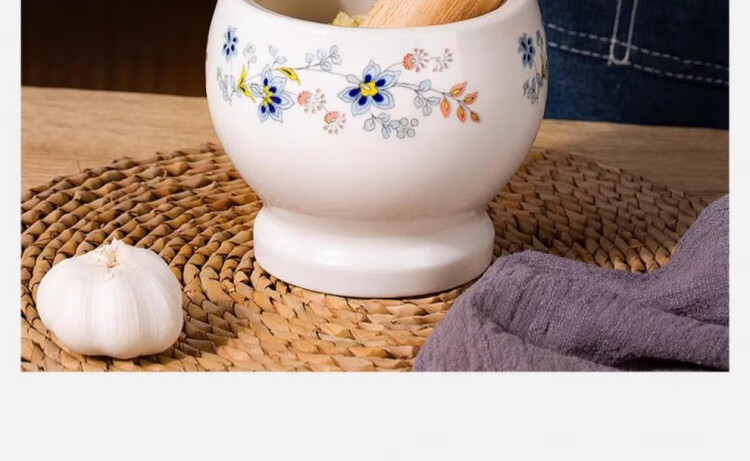LNGA LANDGRE Jingdezhen high-quality garlic mortar household ceramic garlic mash artifact manual mash medicine jar beating bowl jar stone mortar old ceramic garlic masher-650ml