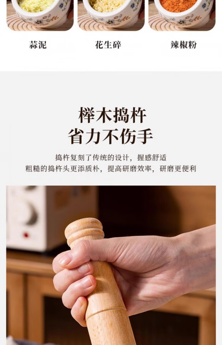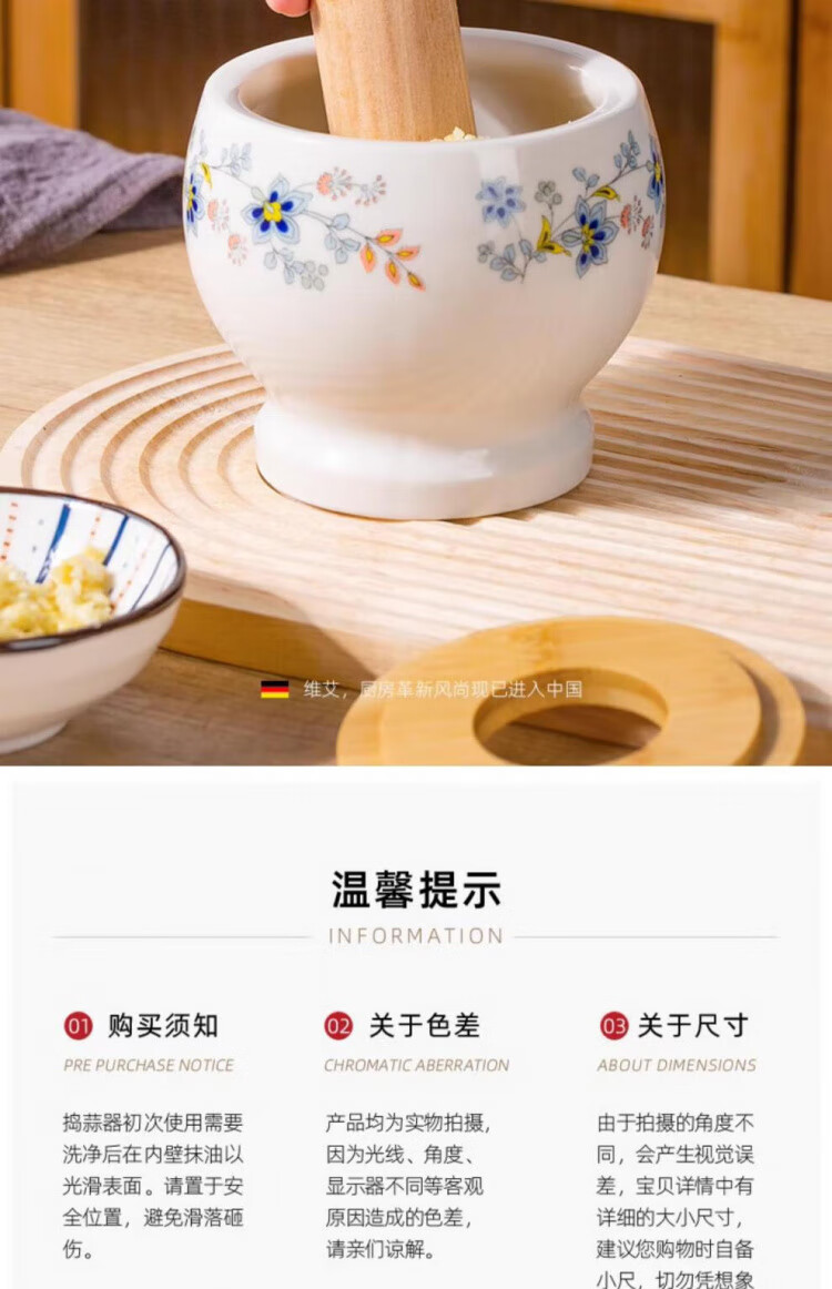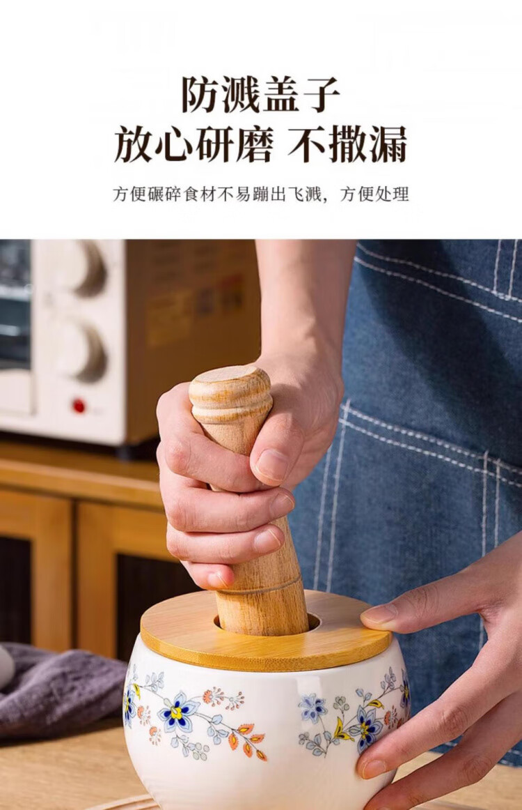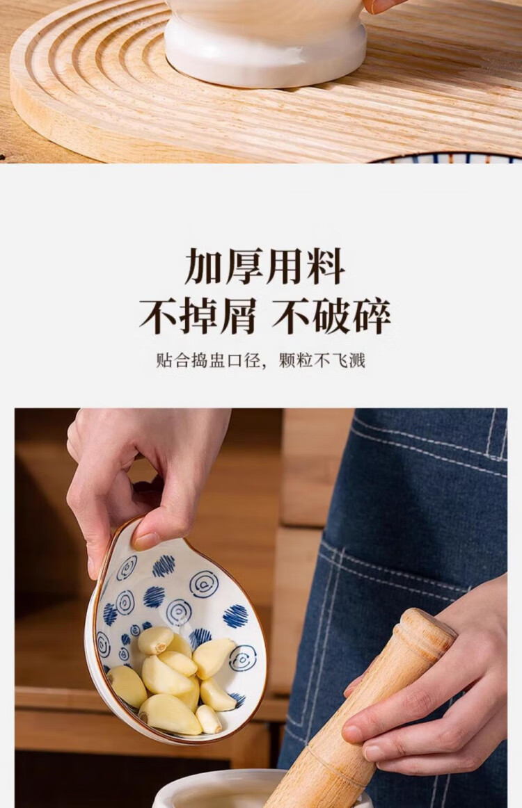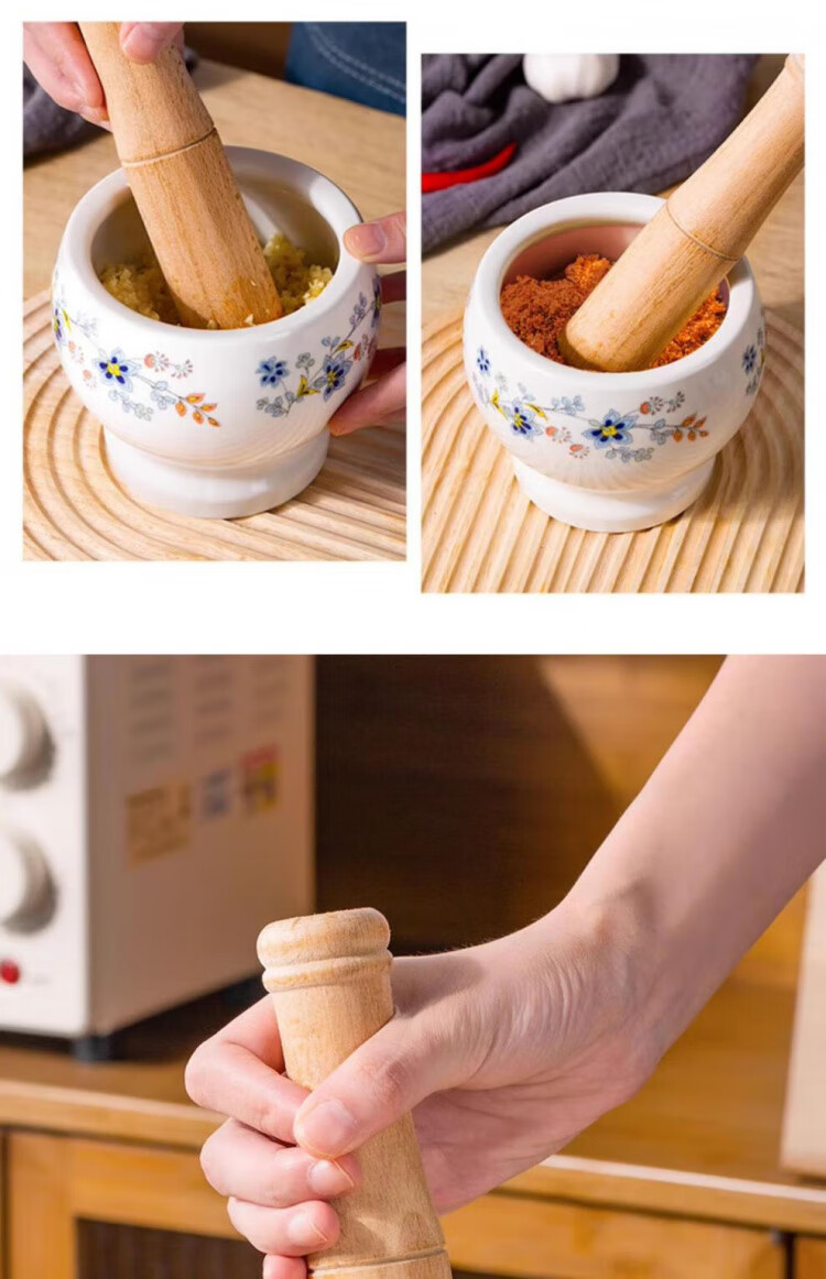 LNGA LANDGRE Jingdezhen high-quality garlic mortar household ceramic garlic mash artifact manual mash medicine jar beating bowl jar stone mortar old ceramic garlic masher-650ml