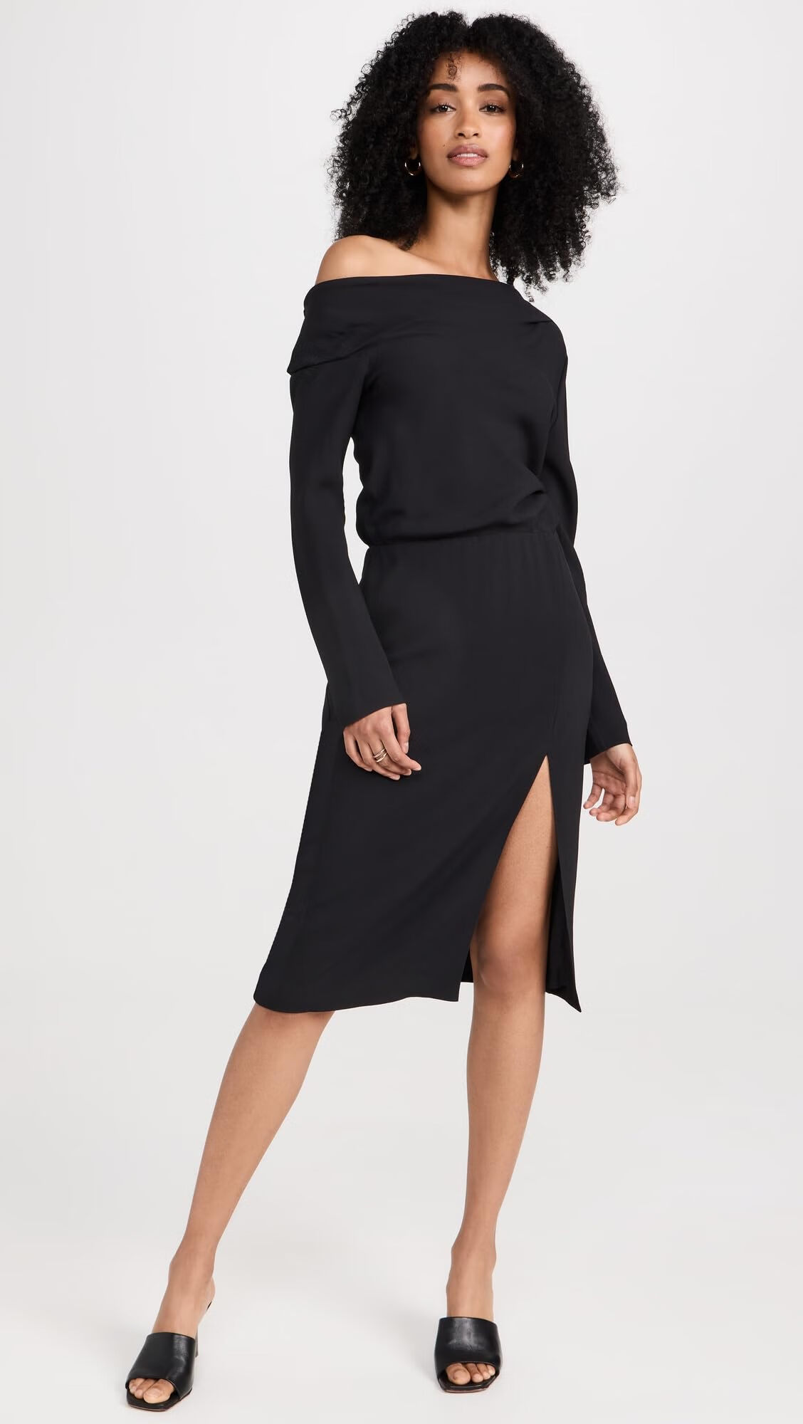 THEORY Women's Asymmetrical Shoulder Midi Dress Thin Pleats Workplace Party Black 6