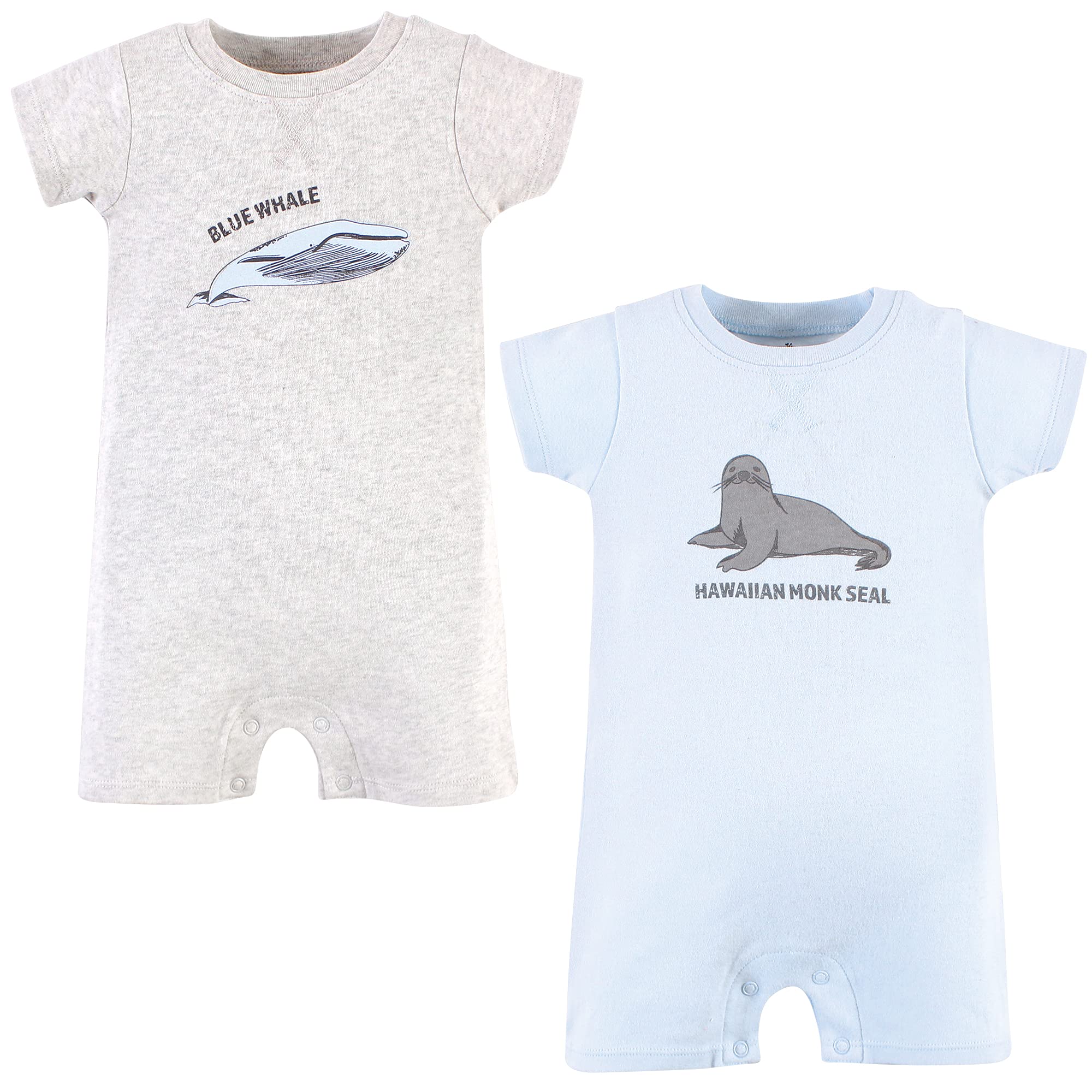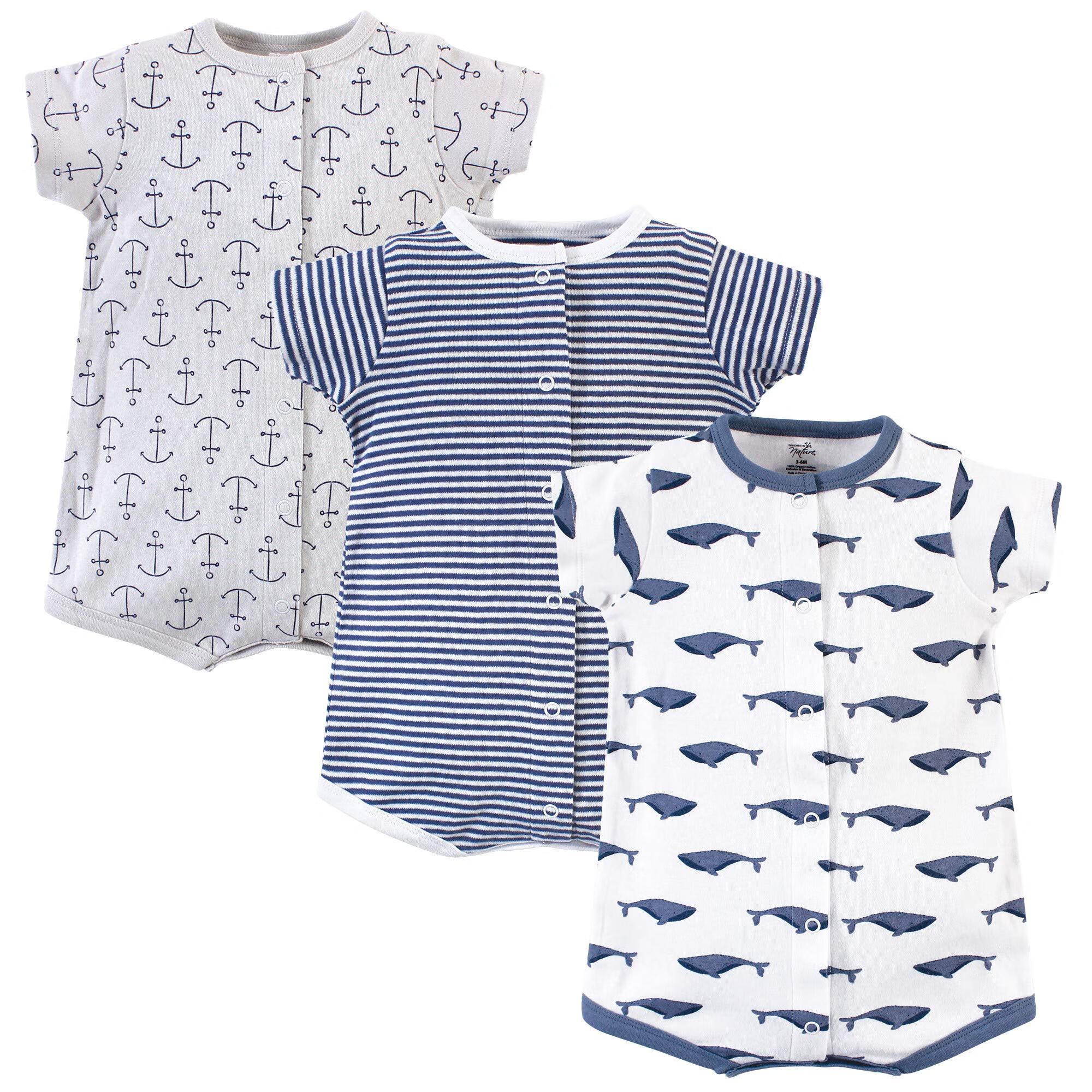 Touched by Nature baby organic cotton jumpsuit, pure cotton, soft and breathable, crew neck shorts style, daily wear for baby boys in all seasons, Lavender 6-9 Months