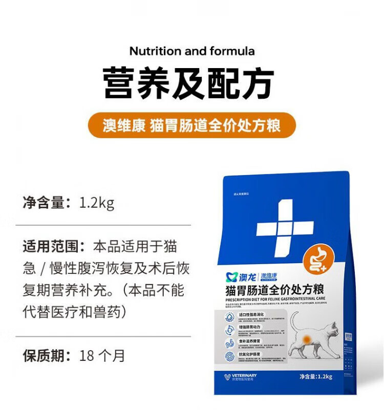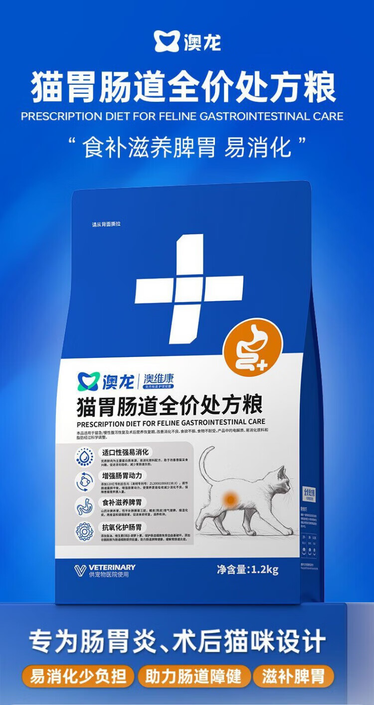 Baichanaolong Food Pet Ankangaoweikang Cat Gastrointestinal Tract Complete Food Diarrhea Postoperative Recovery Cat Food 1.2kg (Free 1 pack of 50g for trial)
